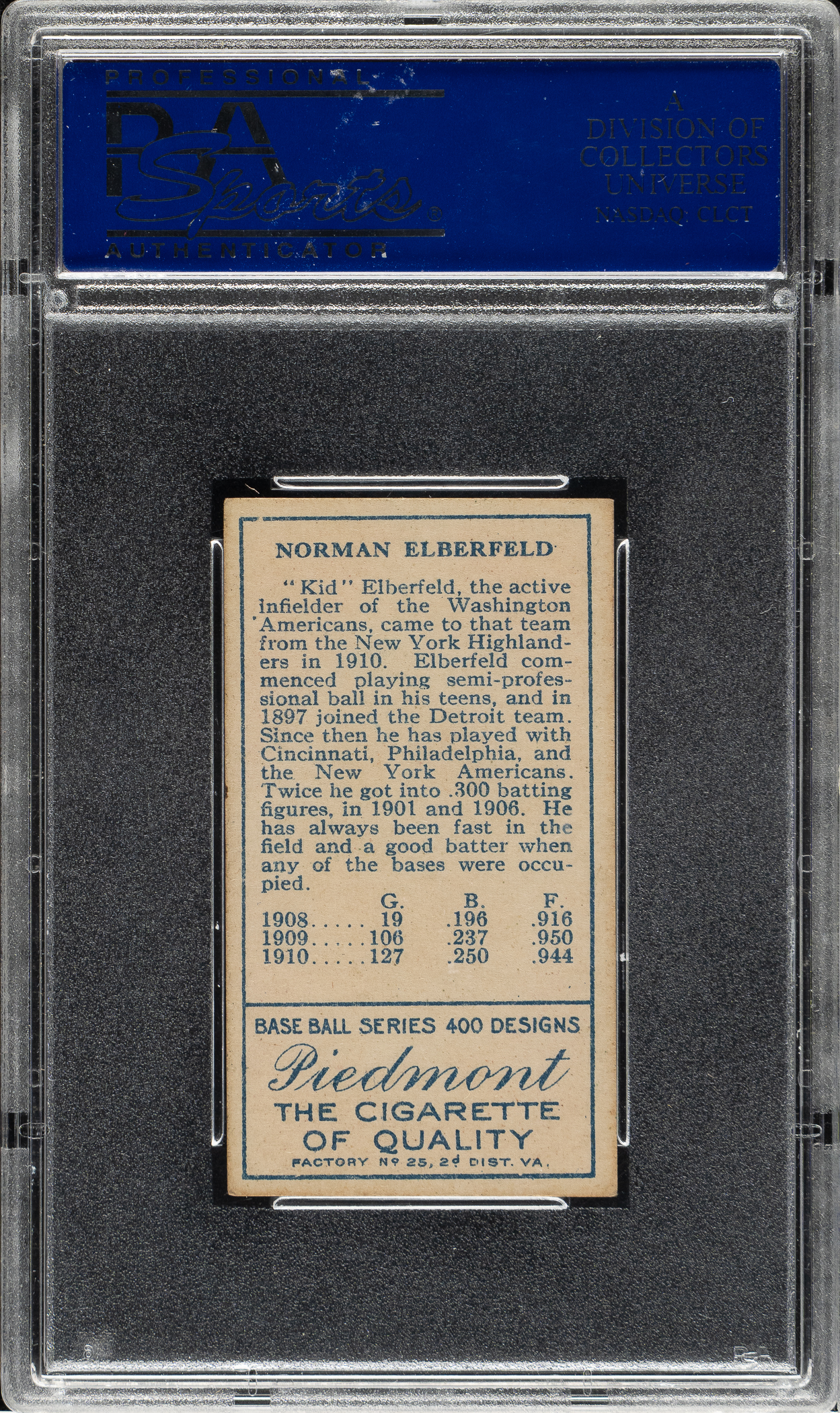 1911 T205 Gold Border George Paskert PSA VG-EX 4 - American Beauty Back