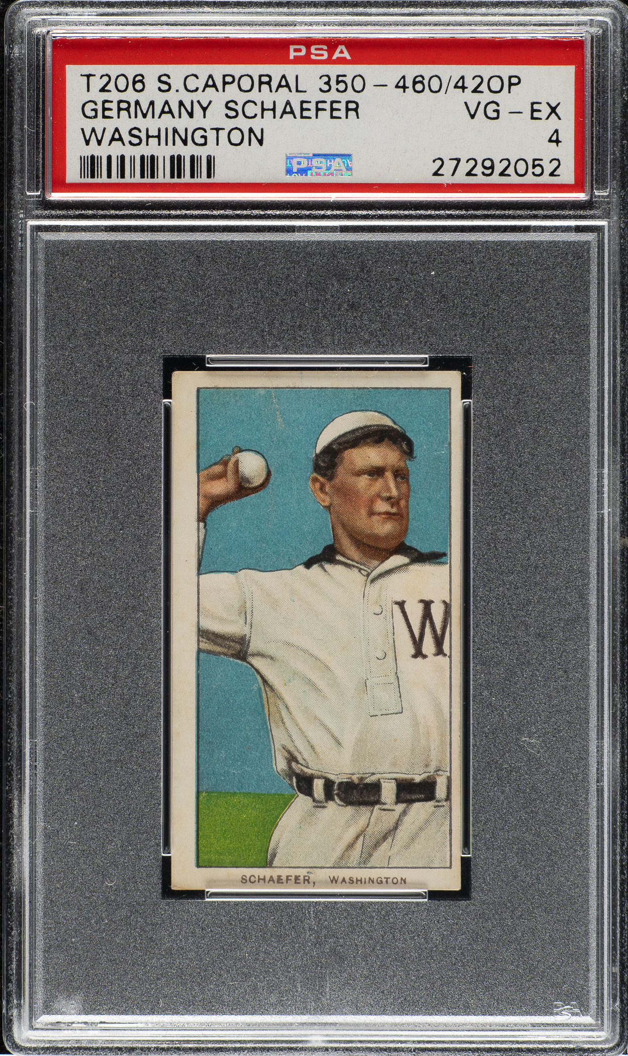 Lot # 950: 1909-1911 T206 White Border Germany Schaefer Washington PSA VG-EX 4