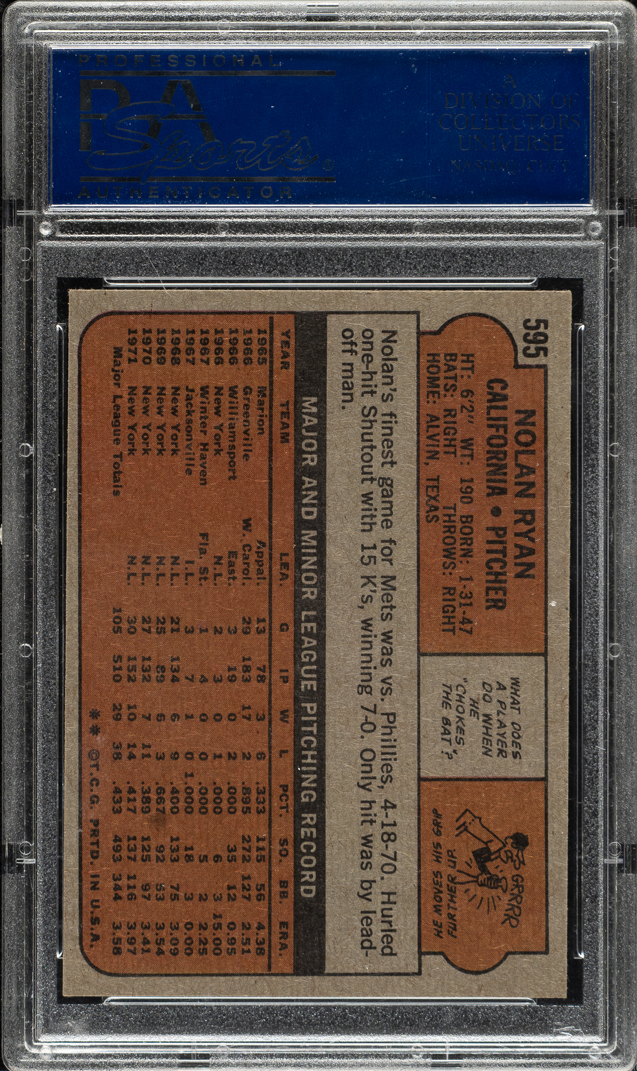 Lot # 2141: 1972 Topps #595 Nolan Ryan PSA NM-MT 8
