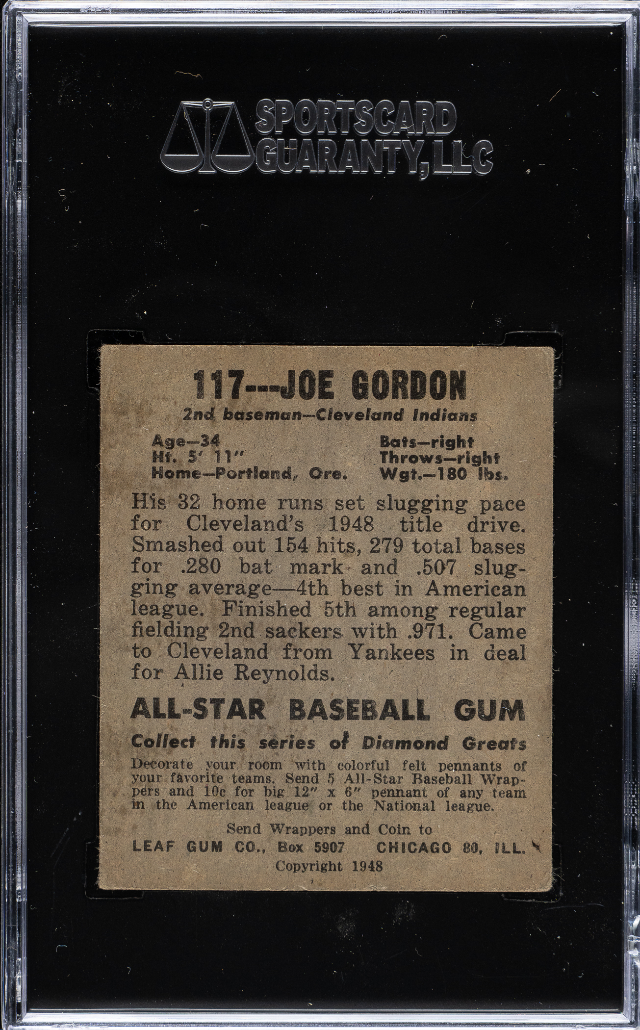 Lot # 1716: 1948-1949 Leaf #117 Joe Gordon SGC EX 60