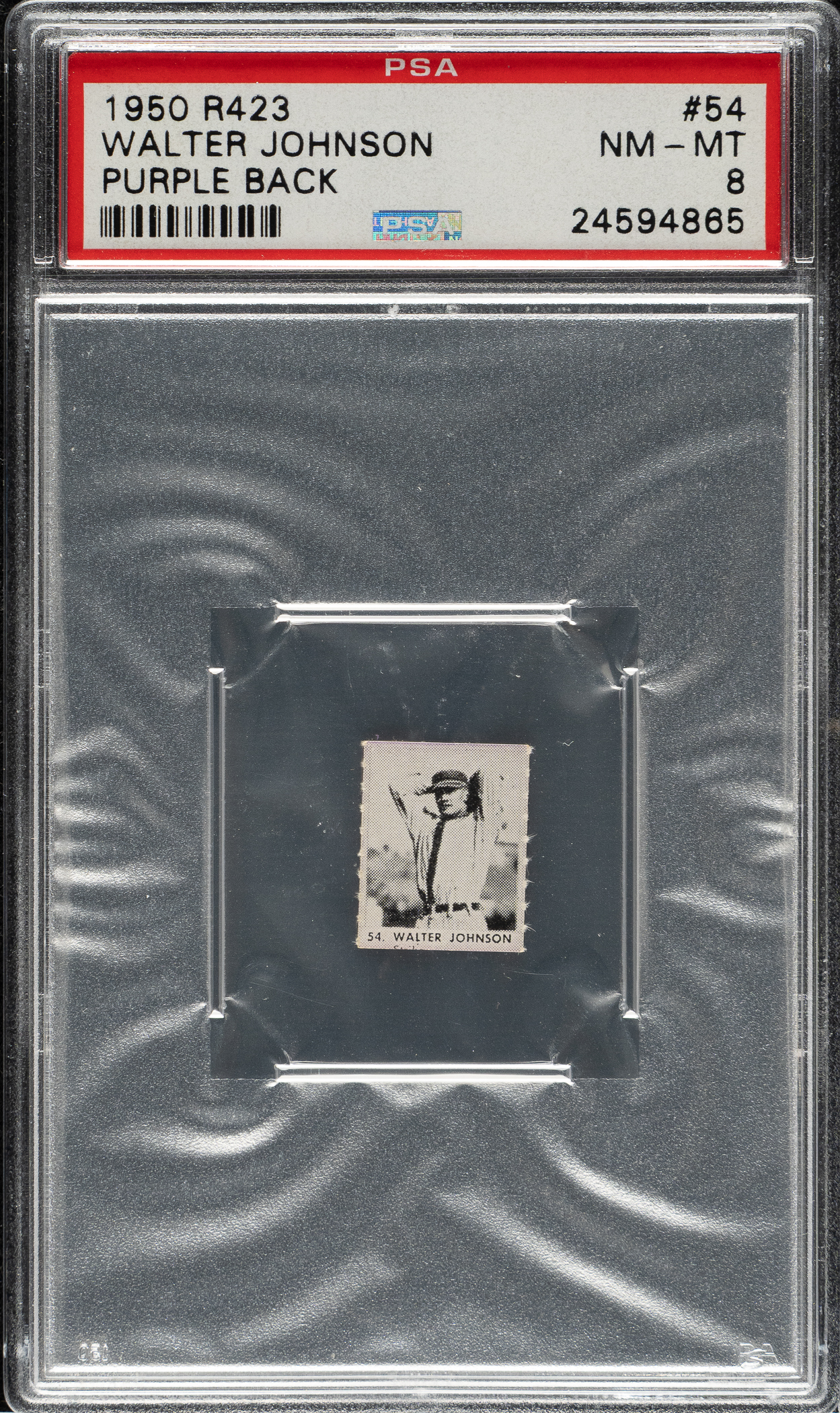 Graded NM-MT 8 by PSA. Washington Senators Hall of Famer Walter Johnson.