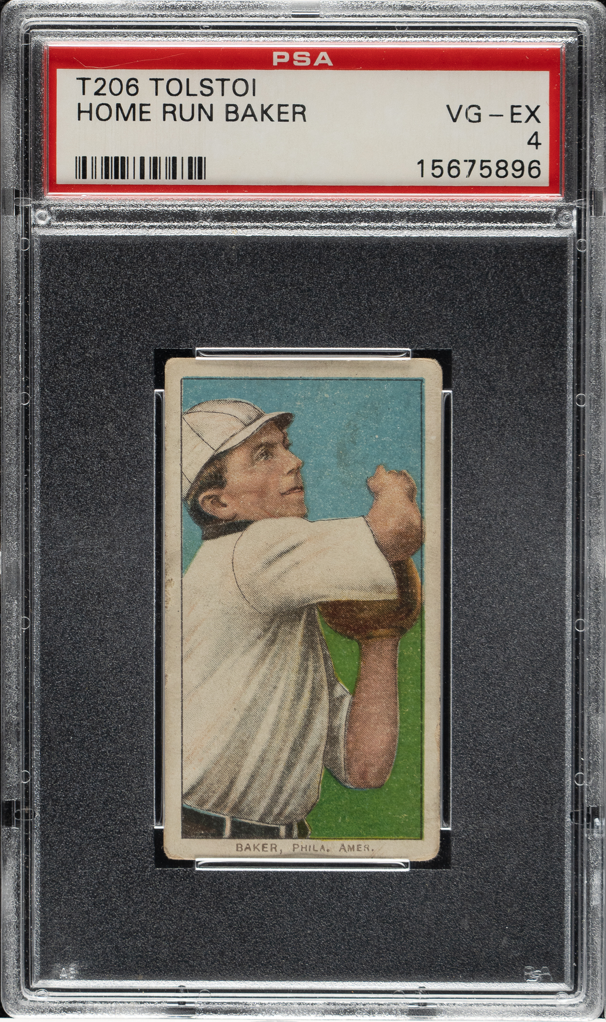 Graded VG-EX 4 by PSA. Philadelphia Athletics Hall of Famer Home Run Baker.