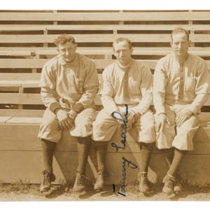 Rare real-photo postcard capturing Honus Wagner, Fred Clarke, and Tommy Leach posing together, circa 1910. Leach has signed the postcard in blue ink on the front. This is one of only two examples of this postcard we have ever offered (the other example we sold was not signed and realized $2,880). The postcard (5-3/8 x 3-3/8 inches), which has not been addressed or mailed, has the number "573" written along the base. In Excellent condition overall. Auction LOA from James Spence/JSA.