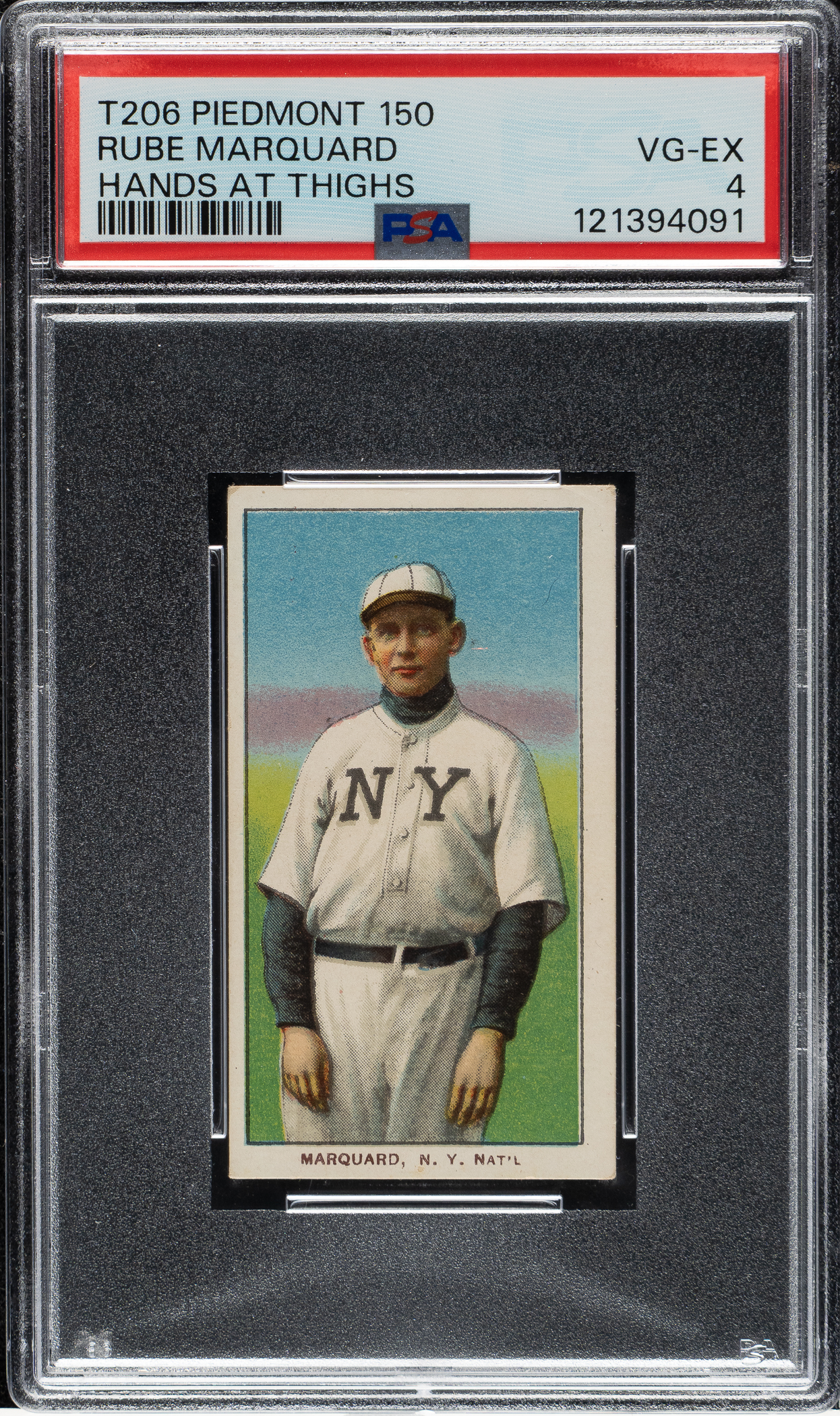 Lot # 324: 1909-1911 T206 White Border Rube Marquard Hands At Thighs PSA VG-EX 4