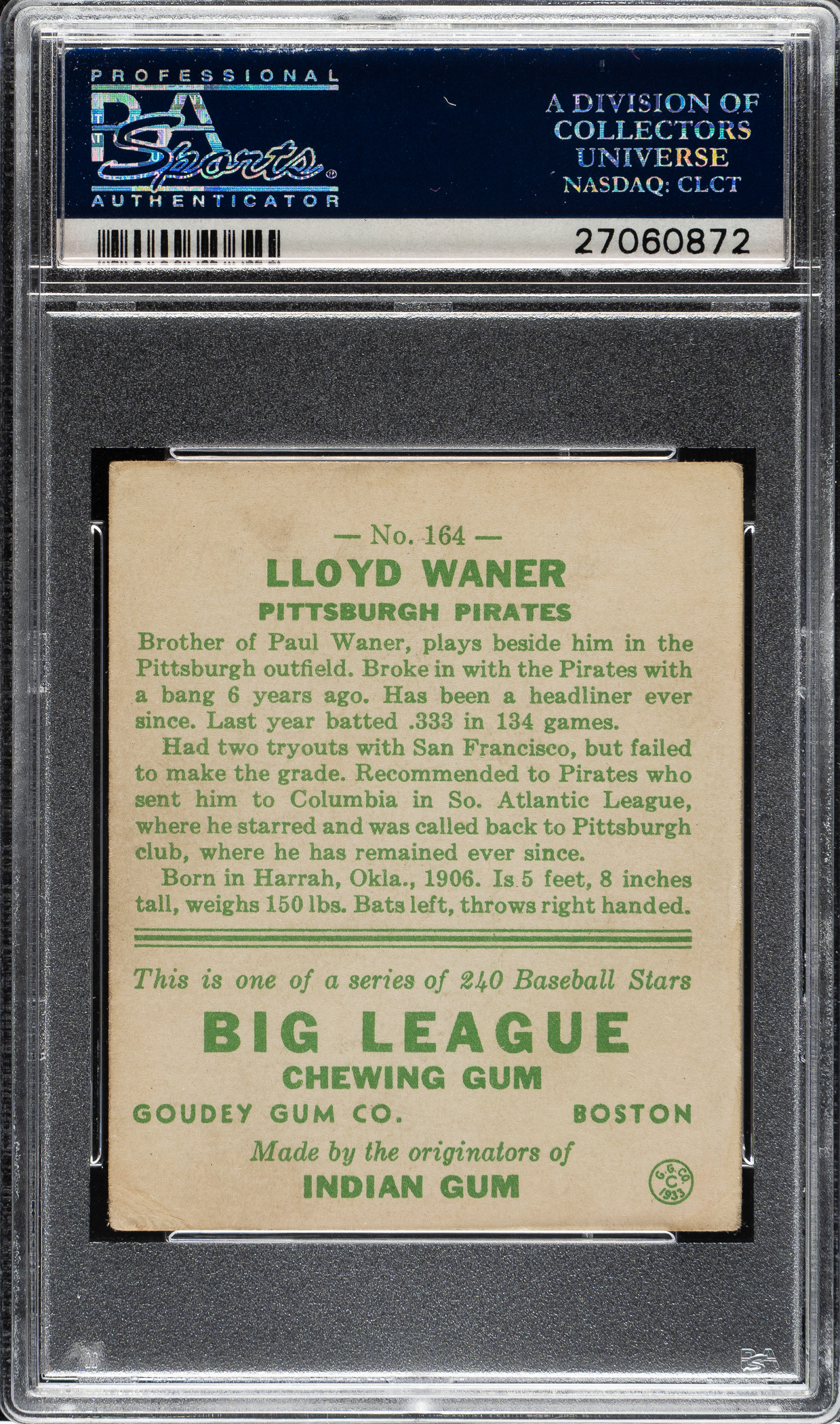MP# 2795 Signed 1933 R319 Goudey #185 Bob Smith PSA GOOD 2 (MK) with NM-MT 8 Signature Buy Now – $325