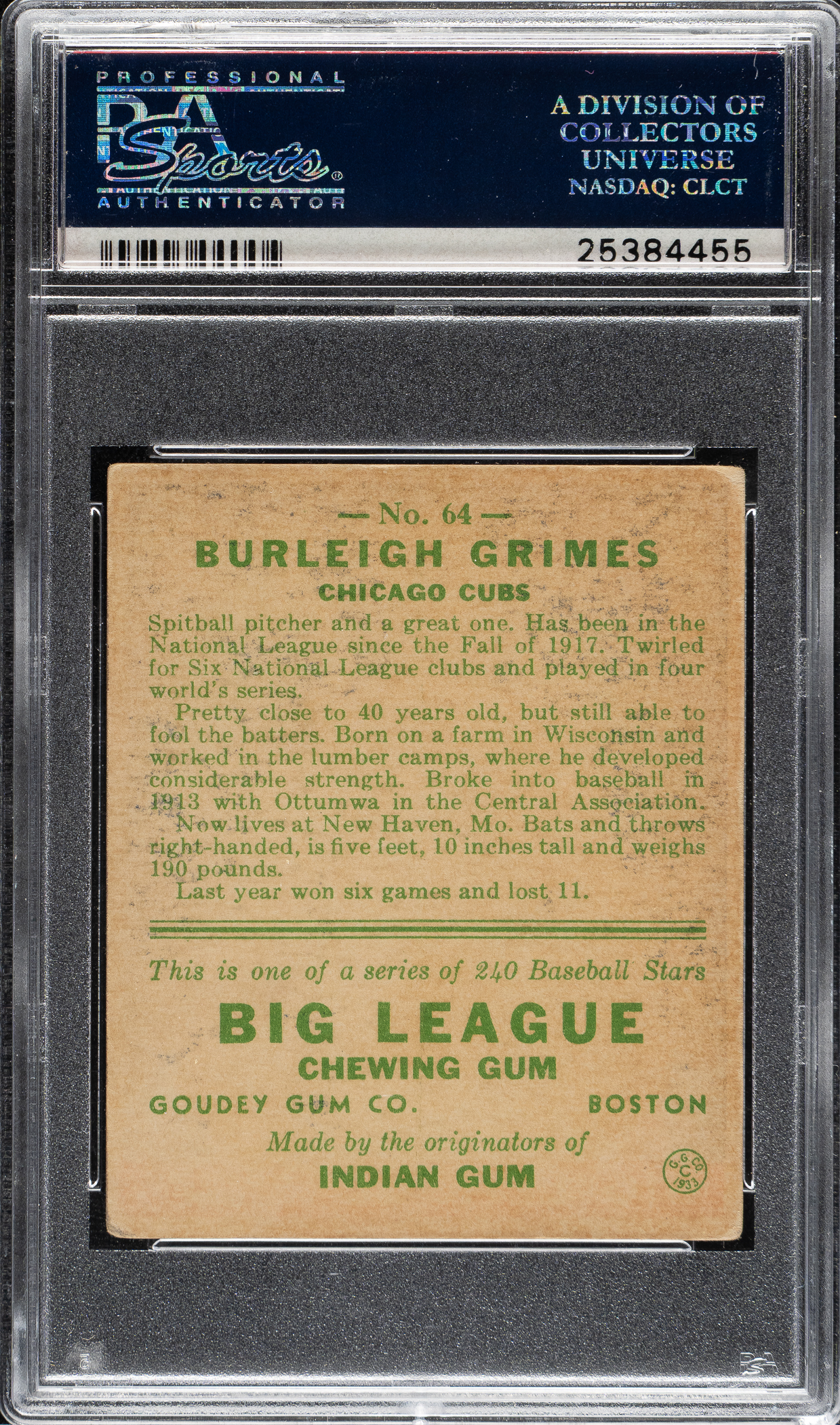 Graded VG-EX 4 by PSA. Chicago Cubs Hall of Famer Burleigh Grimes.