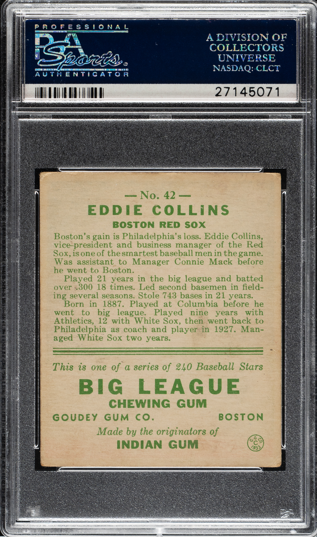 Lot # 1462: 1933 R319 Goudey #42 Eddie Collins PSA VG-EX 4