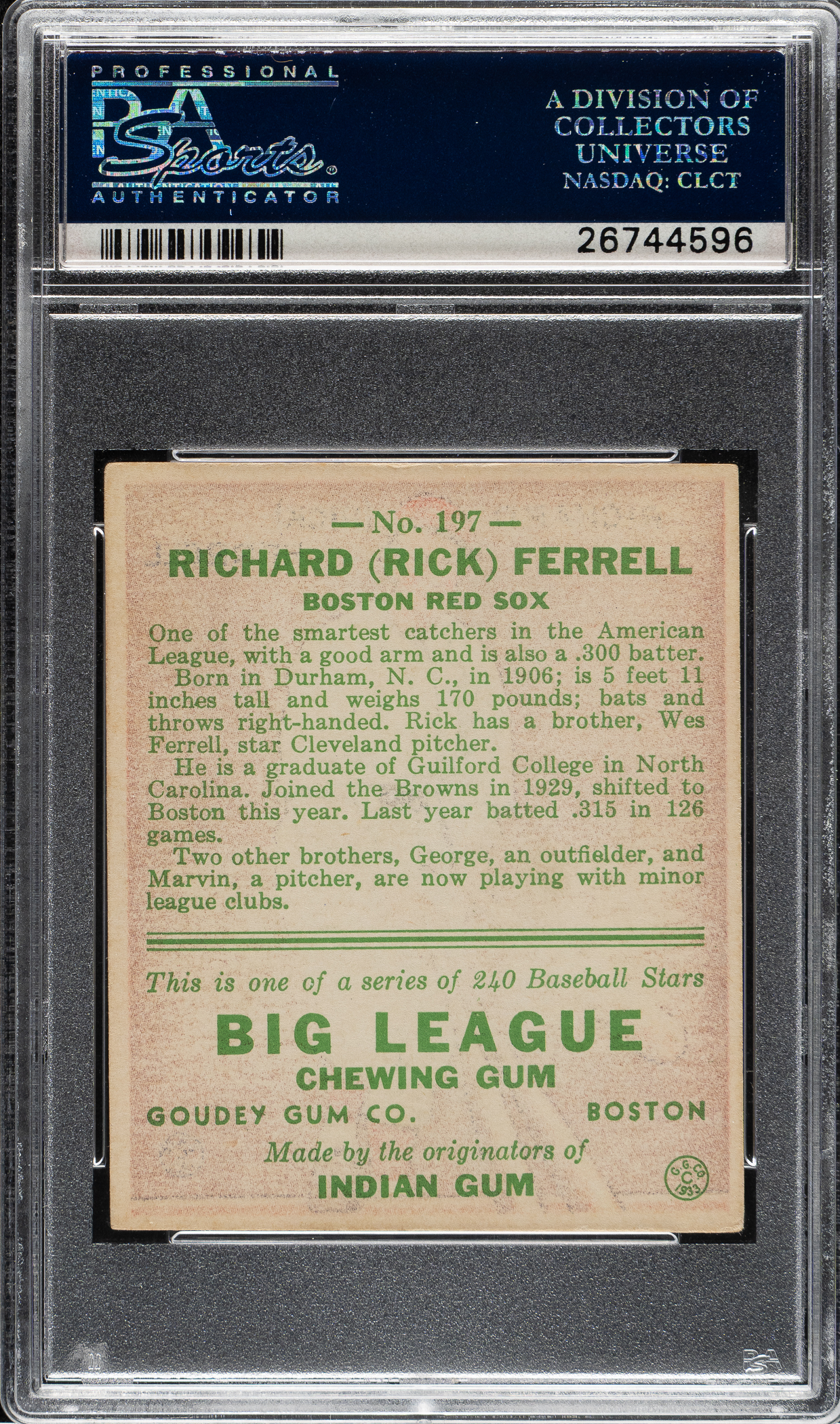 Lot # 1421: 1933 R319 Goudey #197 Rick Ferrell PSA VG-EX+ 4.5