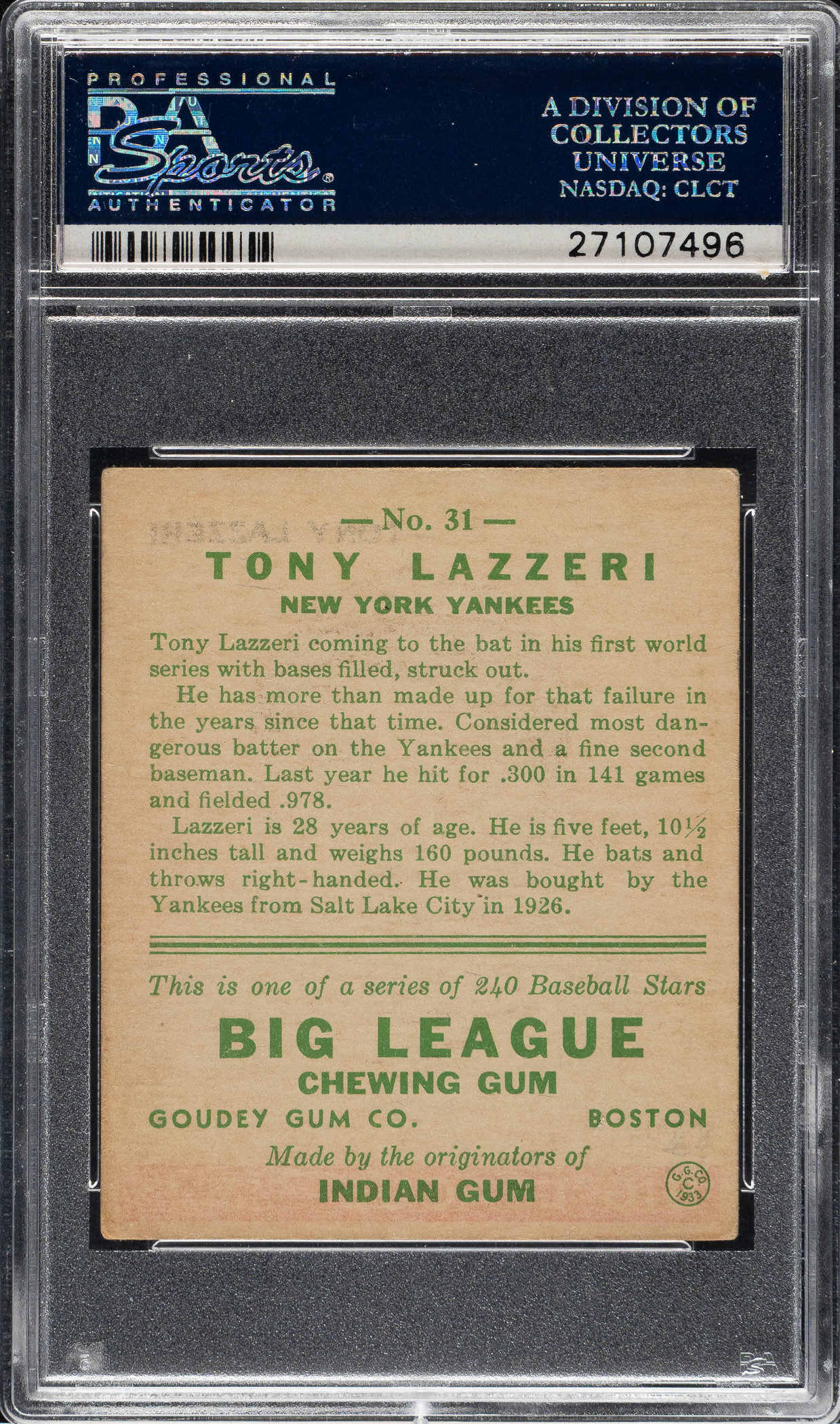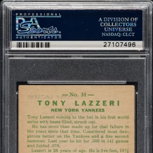 Lot # 1457: 1933 R319 Goudey #31 Tony Lazzeri PSA VG-EX 4