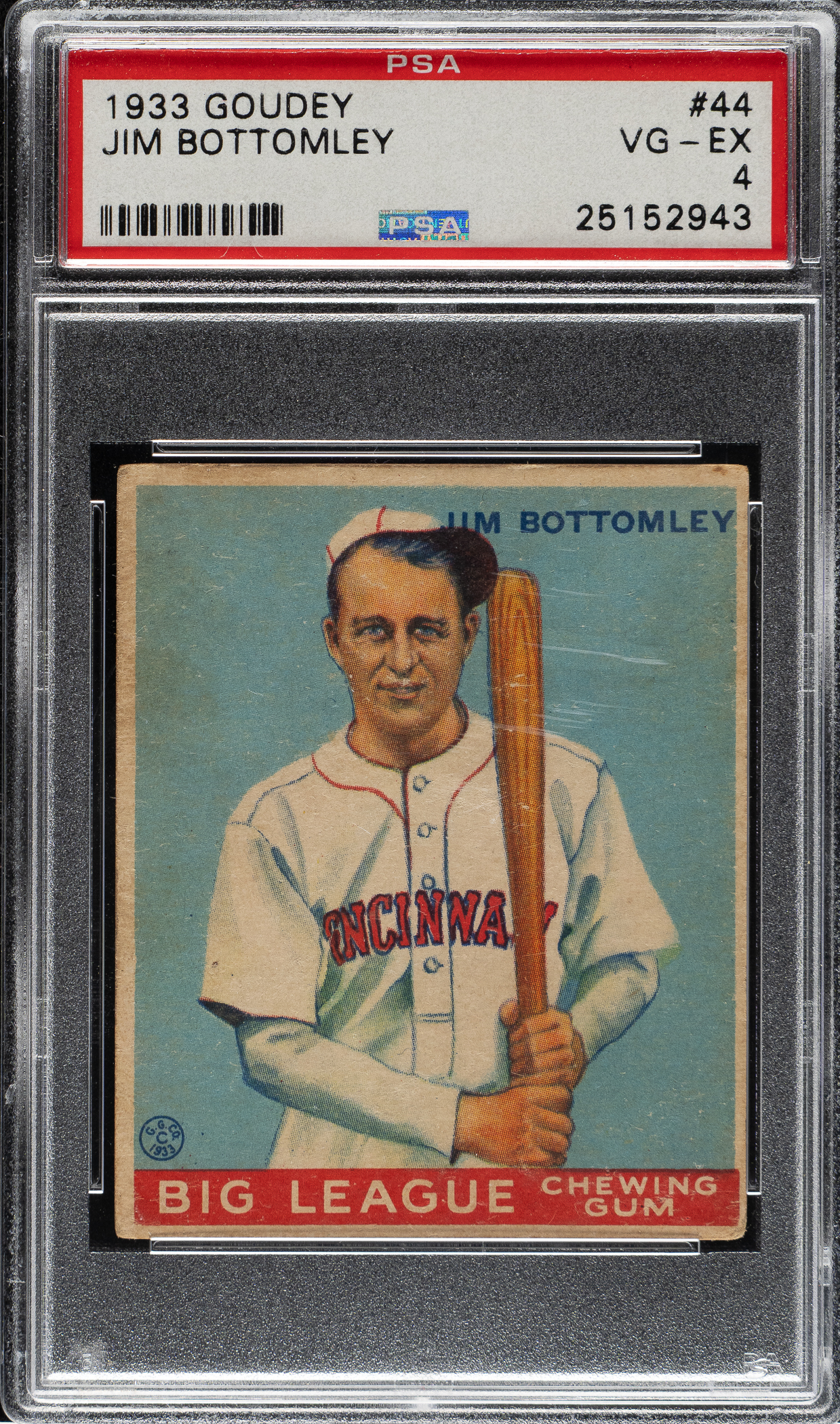 Graded VG-EX 4 by PSA. Cincinnati Reds Hall of Famer Jim Bottomley.