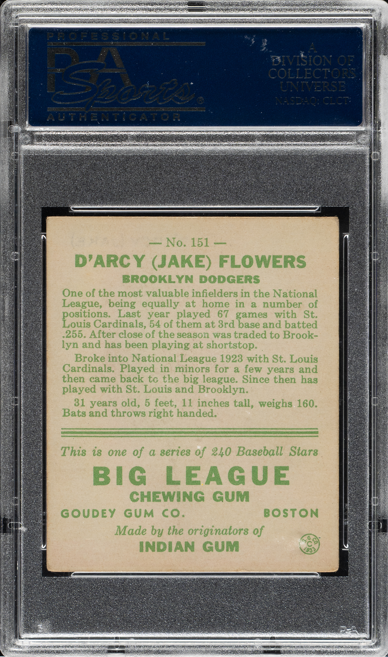Lot # 1397: 1933 R319 Goudey #151 Jake Flowers PSA VG 3