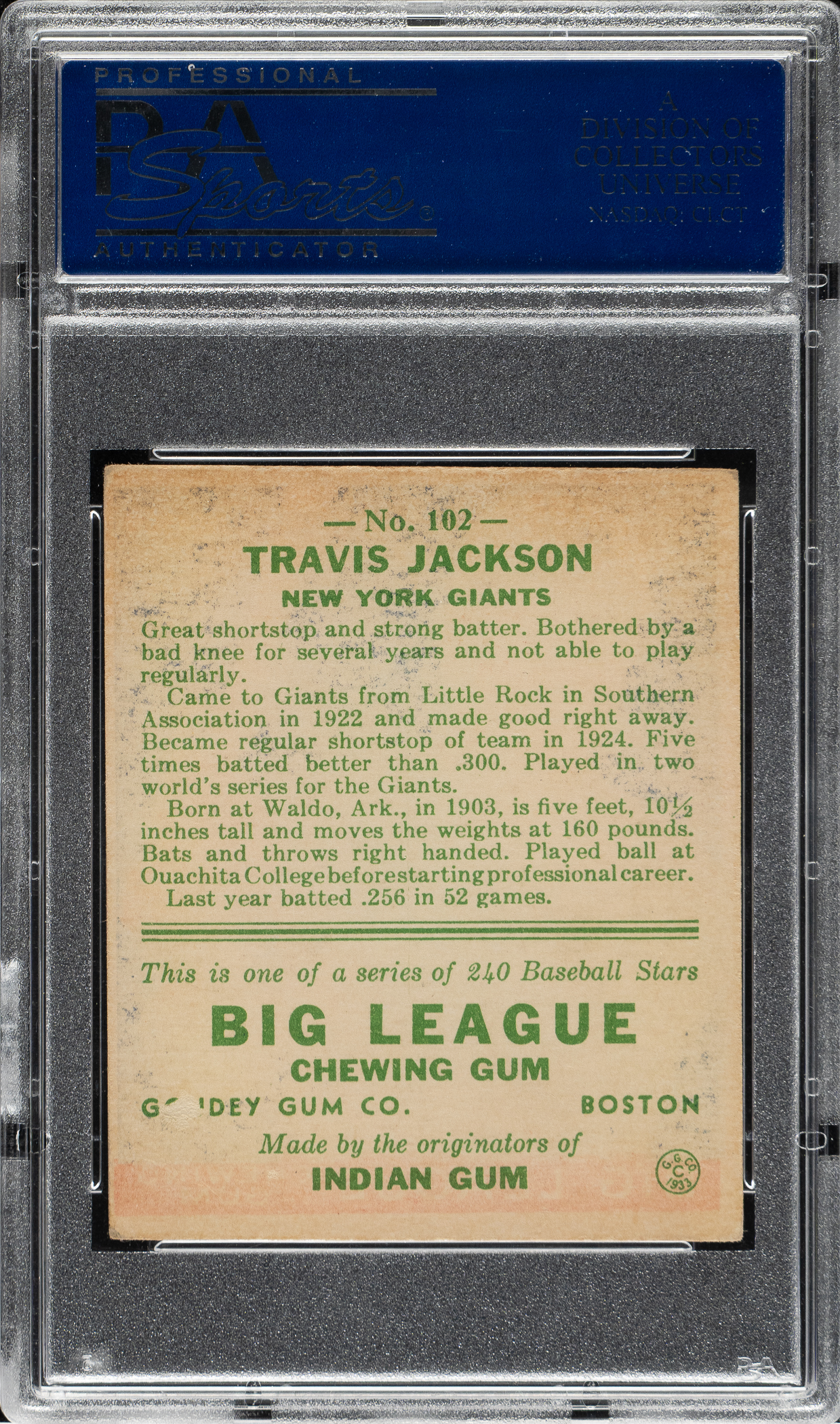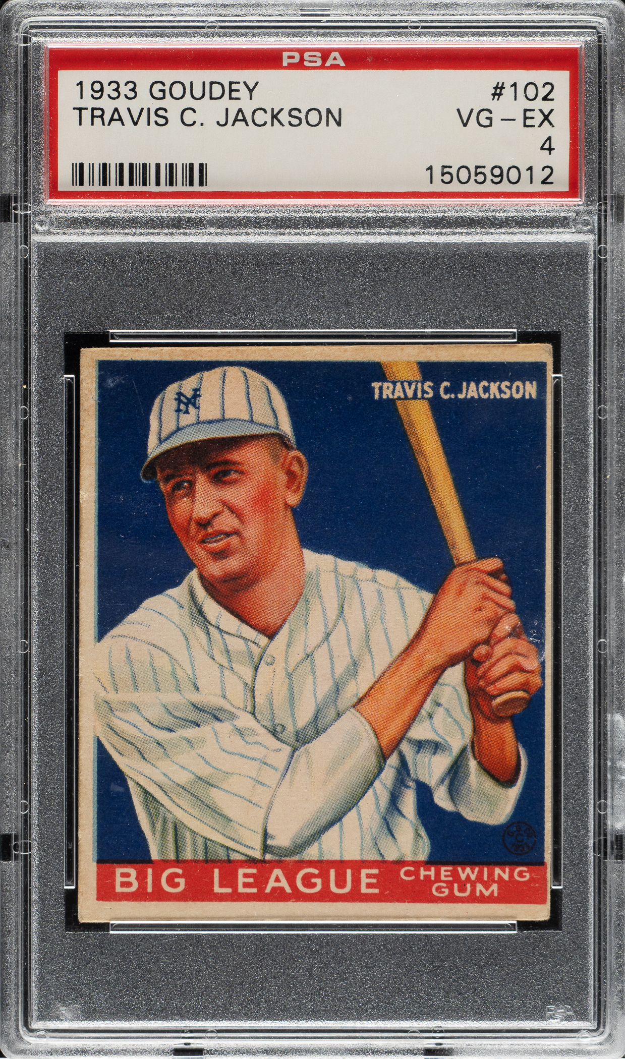 Lot # 1370: 1933 R319 Goudey #102 Travis C. Jackson PSA VG-EX 4