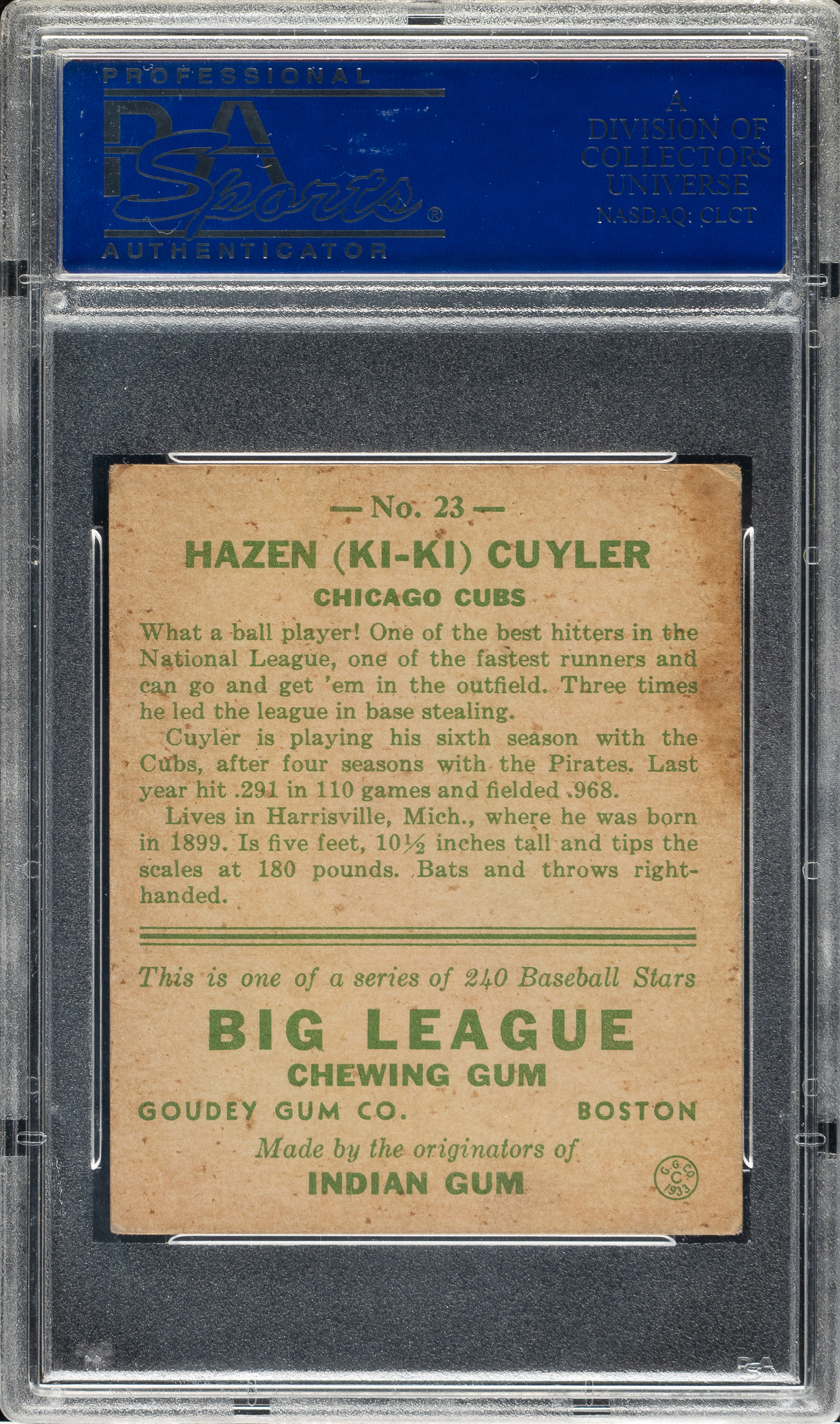 Lot # 1445: 1933 R319 Goudey #23 KiKi Cuyler PSA EX 5