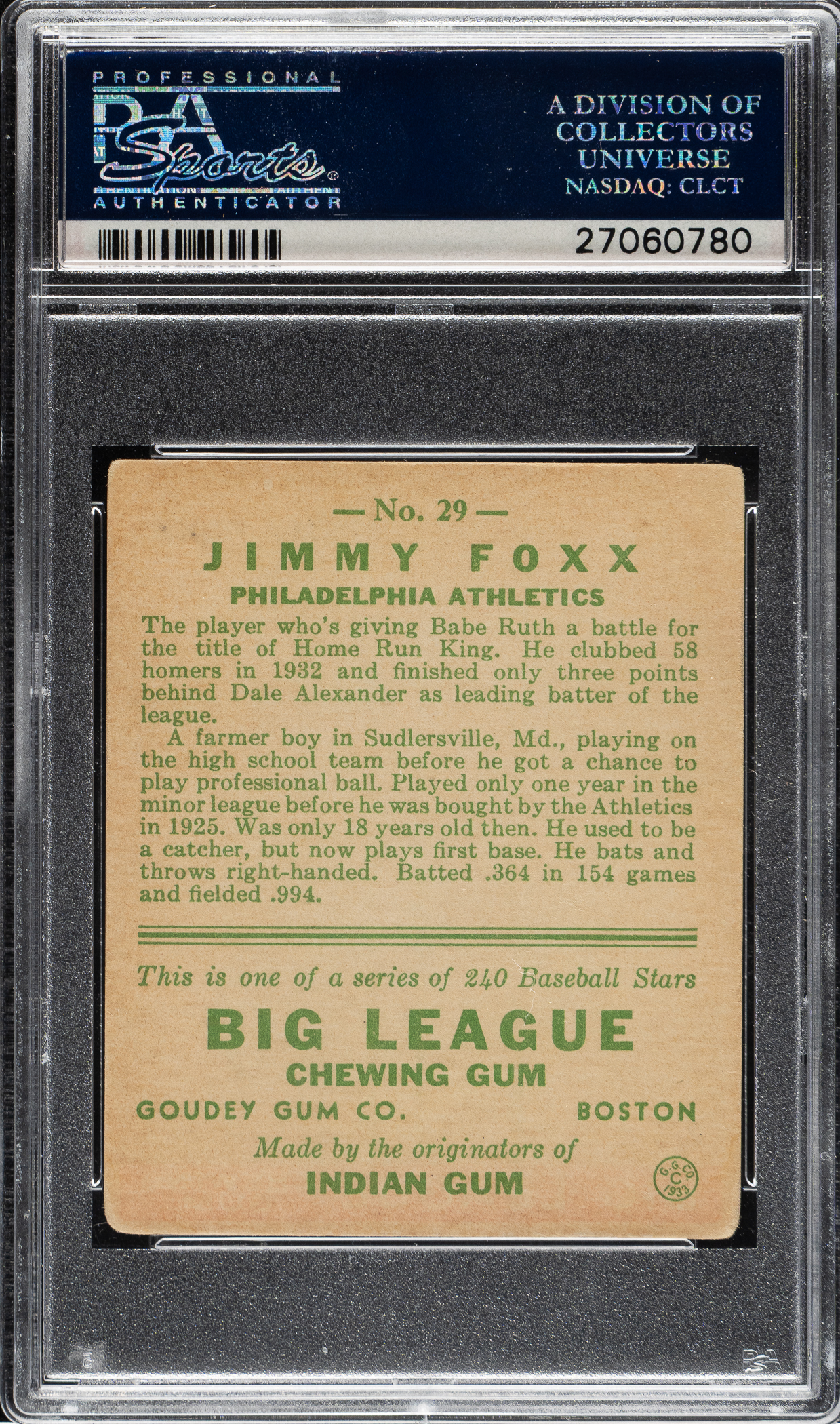 Lot # 1454: 1933 R319 Goudey #29 Jimmie Foxx PSA VG 3