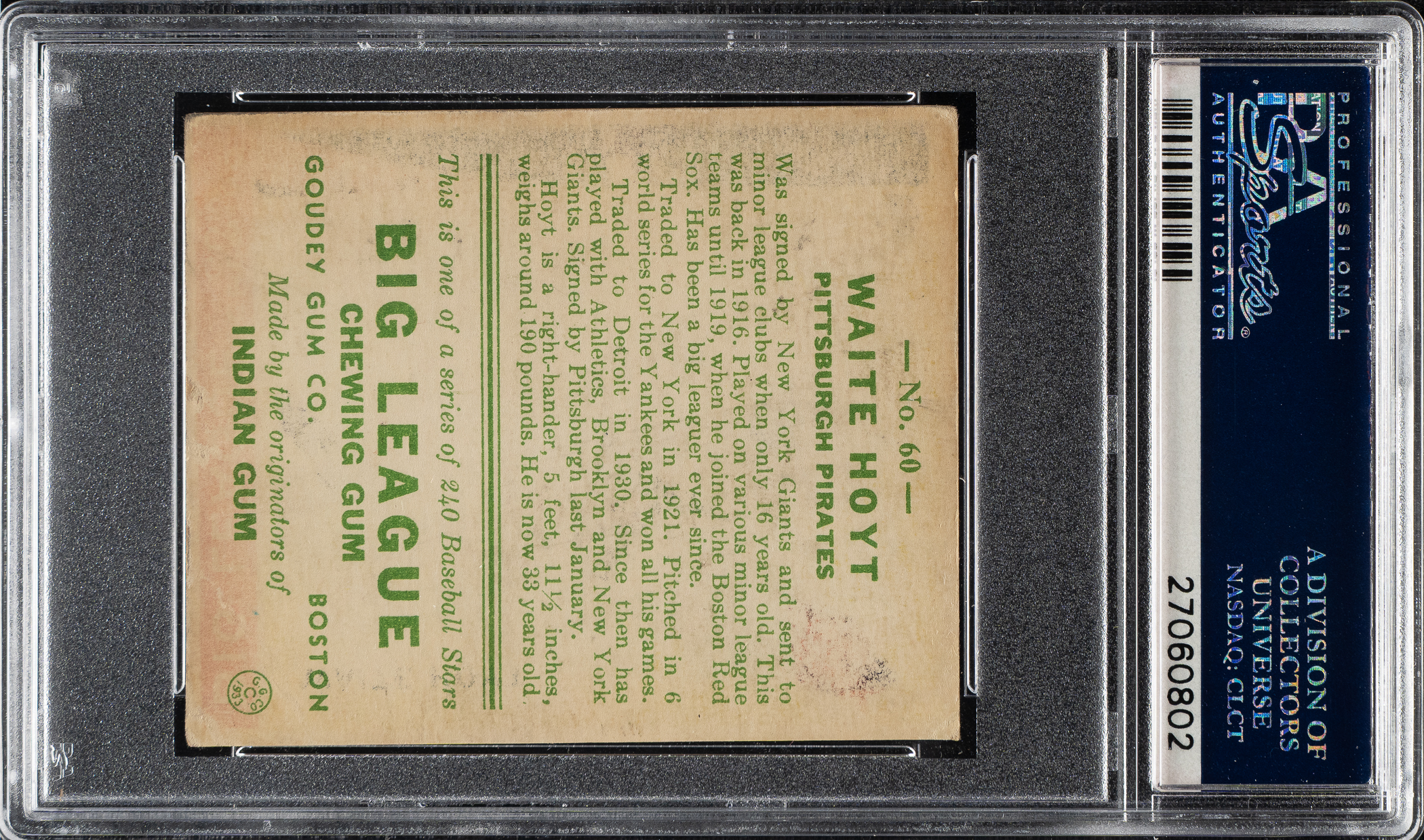 Graded VG-EX 4 by PSA. Pittsburgh Pirates Hall of Famer Waite Hoyt.