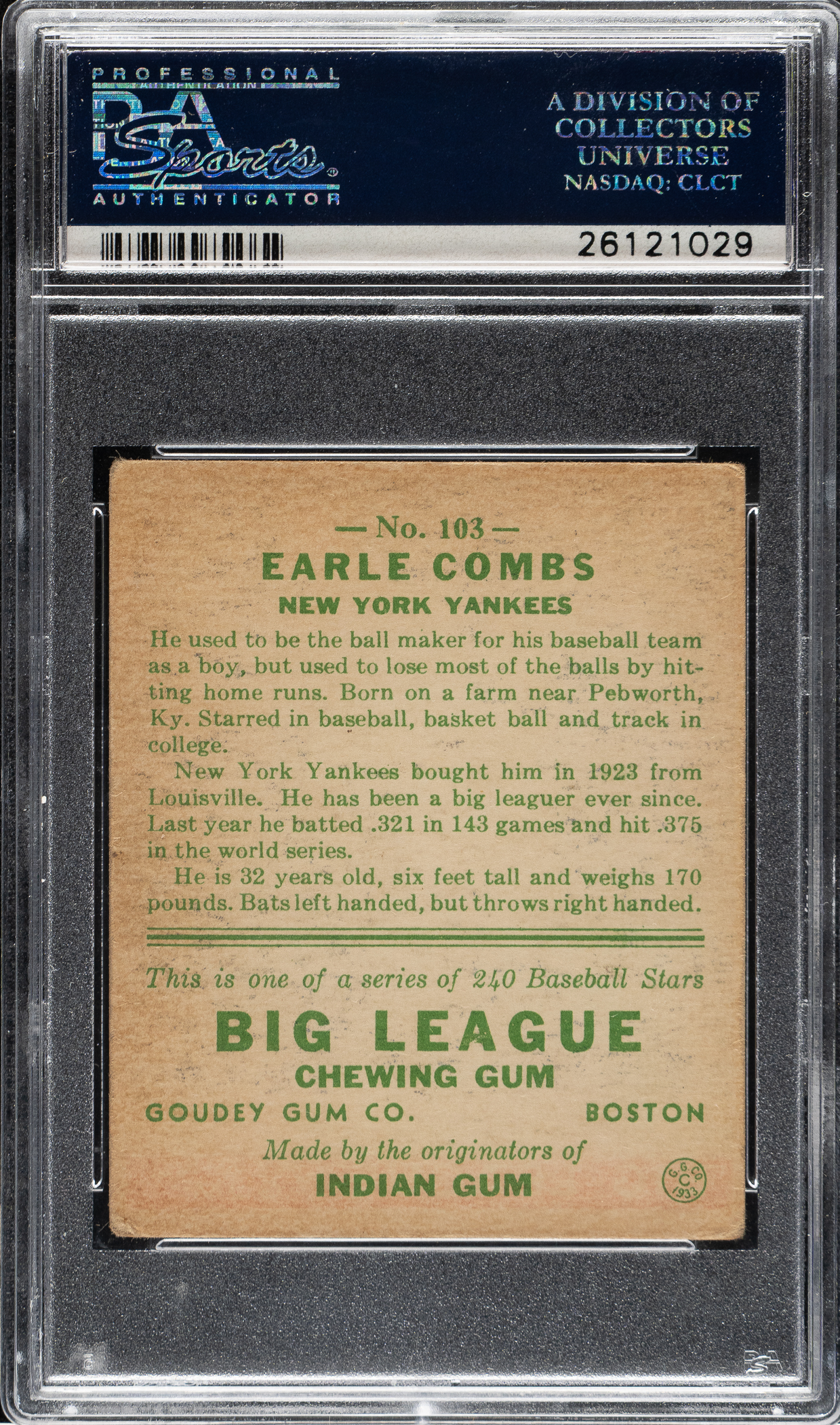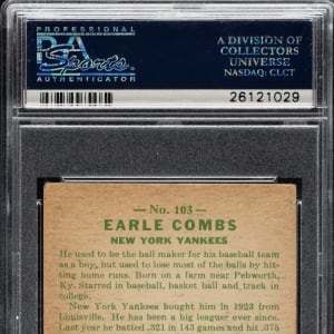 Lot # 1373: 1933 R319 Goudey #103 Earle Combs PSA VG-EX 4