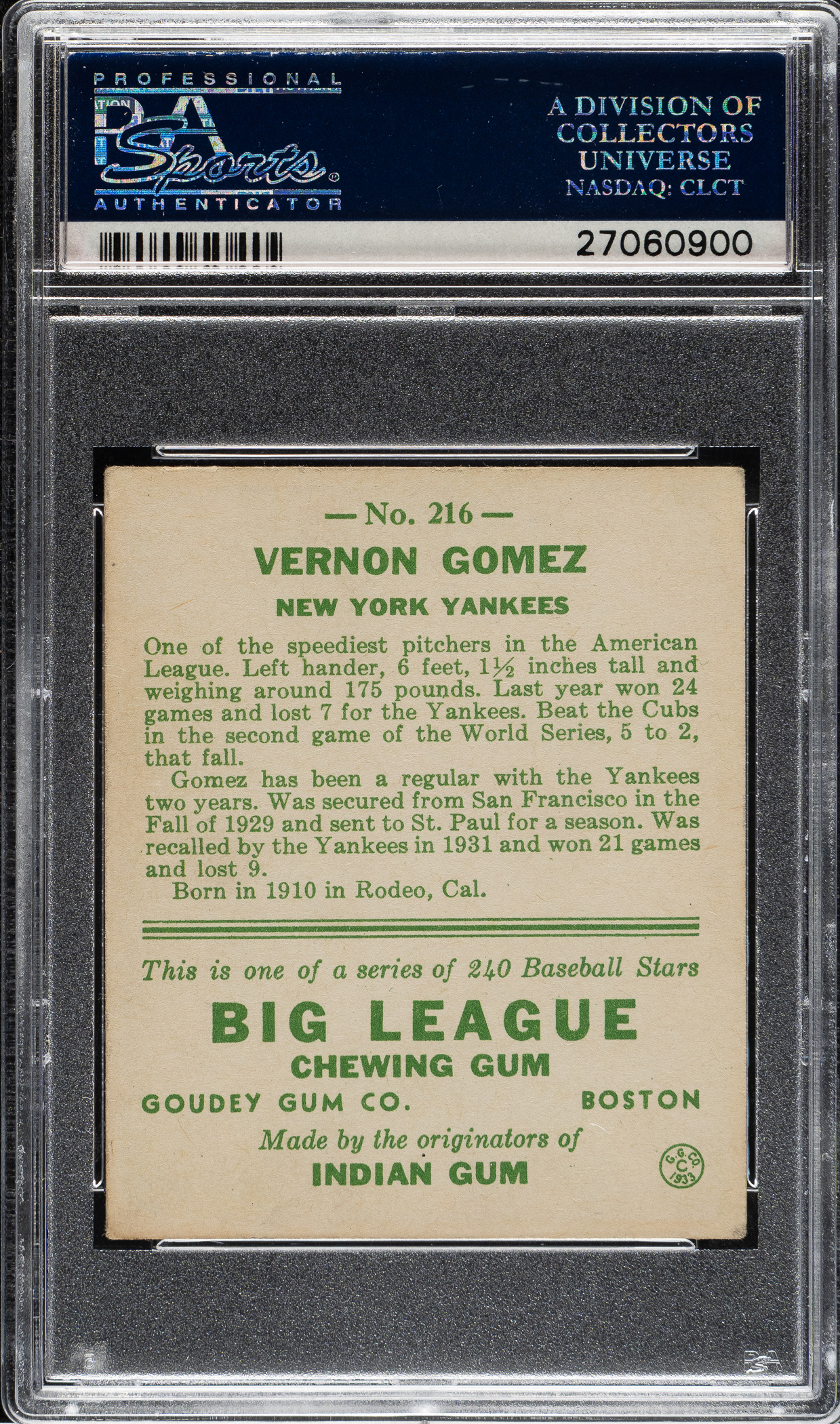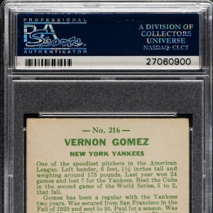 Graded EX 5 by PSA. New York Yankees Hall of Famer Vernon Gomez.