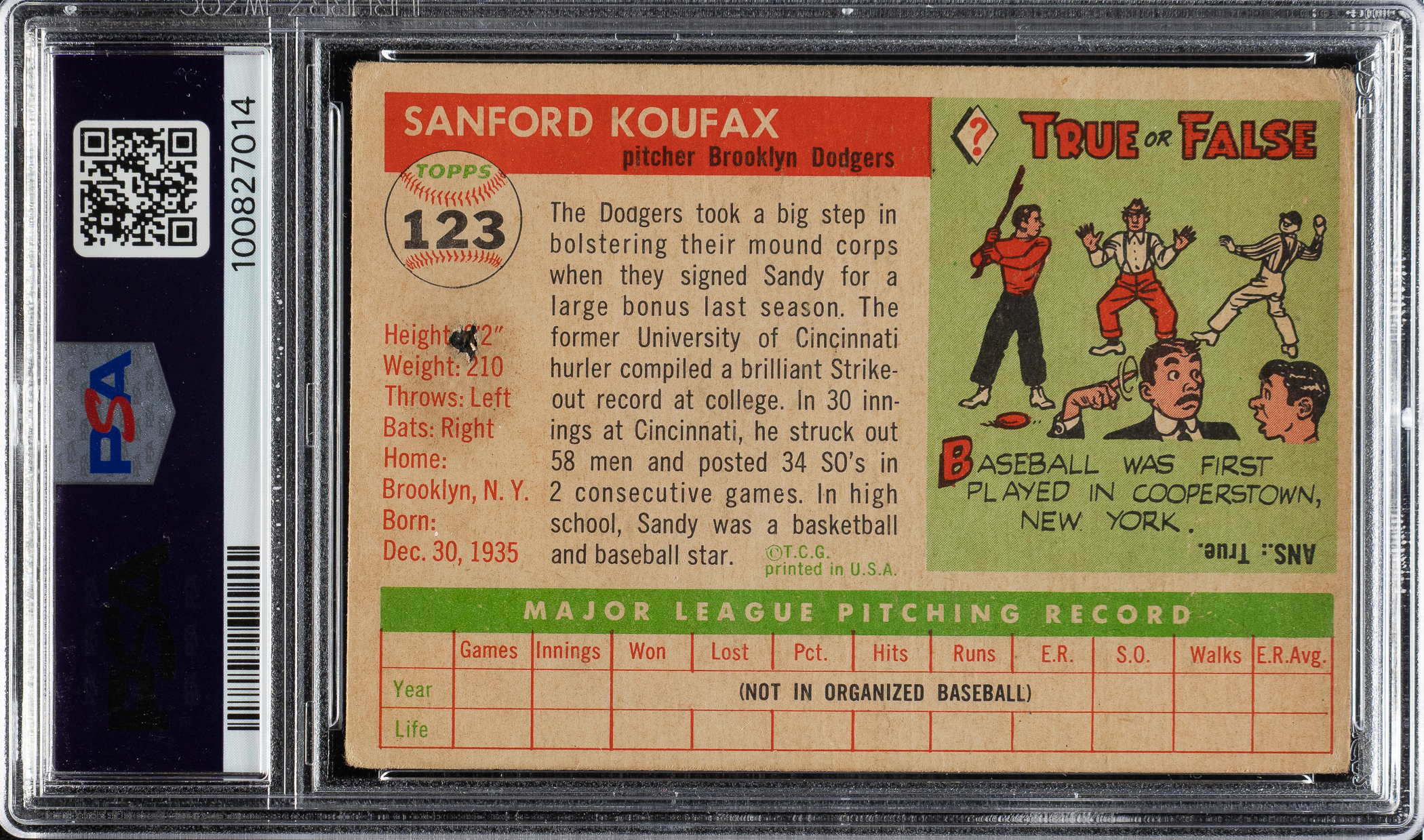 Graded Authentic by PSA. Brooklyn Dodgers Hall of Famer Sandy Koufax.