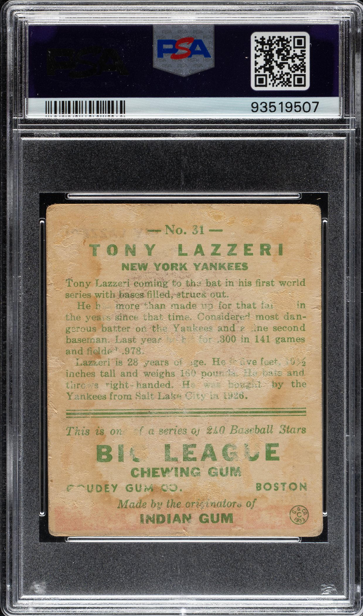Lot # 1456: 1933 R319 Goudey #31 Tony Lazzeri PSA POOR 1