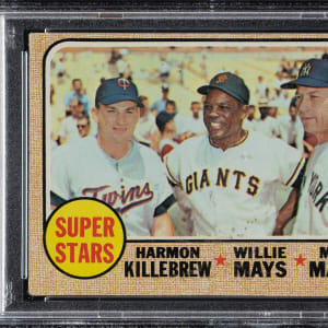 Lot # 2108: 1968 Topps #490 Super Stars with Killebrew, Mays, and Mantle PSA VG 3 (MK)