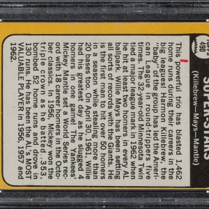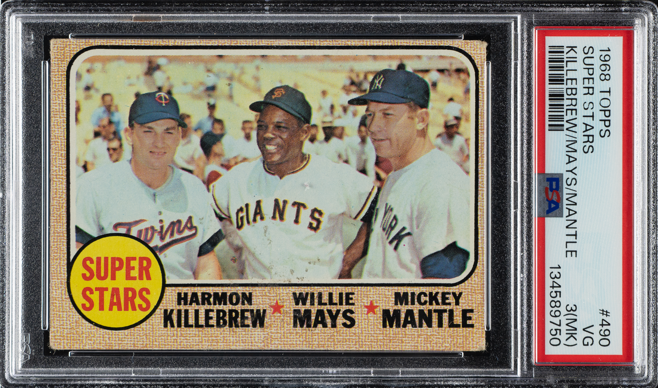 Graded VG 3 (MK) by PSA. Minnesota Twins, San Francisco Giants, and New York Yankees Hall of Famers Harmon Killebrew, Willie Mays, and Mickey Mantle.