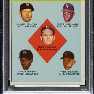 1961 Topps #44 AL Home Run Leaders with Mickey Mantle and Roger Maris PSA NM-MT 8