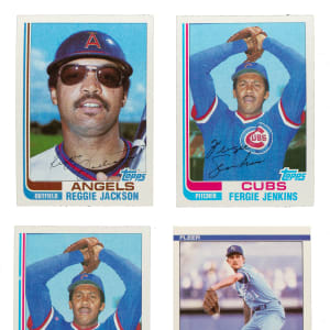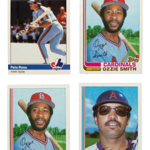 Presented is a near-complete set collection of 1982 Topps Traded (two) and 1984 Fleer Update. This collection consists of the following: 1) 1982 Topps Traded (129/132): Missing the following three cards for completion: #40, 98 Ripken Jr., and 101. Condition is 80% Nr/Mt to Nr/Mt-Mt and 20% Ex to Ex-Mt. Keys: #47T Jackson (Nr/Mt-Mt) and 109T Smith (Nr/Mt). 2) 1982 Topps Traded (131/132): Missing just #98 Ripken Jr. for completion. Condition is 79% Nr/Mt to Nr/Mt-Mt and 21% Ex to Ex-Mt. Keys: #47T Jackson (Nr/Mt) and 109T Smith (Ex-Mt). 3) 1984 Fleer Update (129/132): Missing the following three cards for completion: #27 Clemens, 43 Gooden, and 93 Puckett. Condition is 70% Nr/Mt to Nr/Mt-Mt and 30% Ex to Ex-Mt (including 2% lesser). Keys: #102 Rose (Nr/Mt) and 103 Saberhagen RC (Ex+). Total: 389 cards. The size/weight of this item requires that there will be an additional shipping charge for this lot.