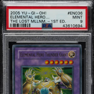 Lot 2791 2005 Yu-Gi-Oh! The Lost Millennium 1st Edition #EN036 Elemental Hero Thunder Giant Ultra Rare PSA GEM MINT 10
