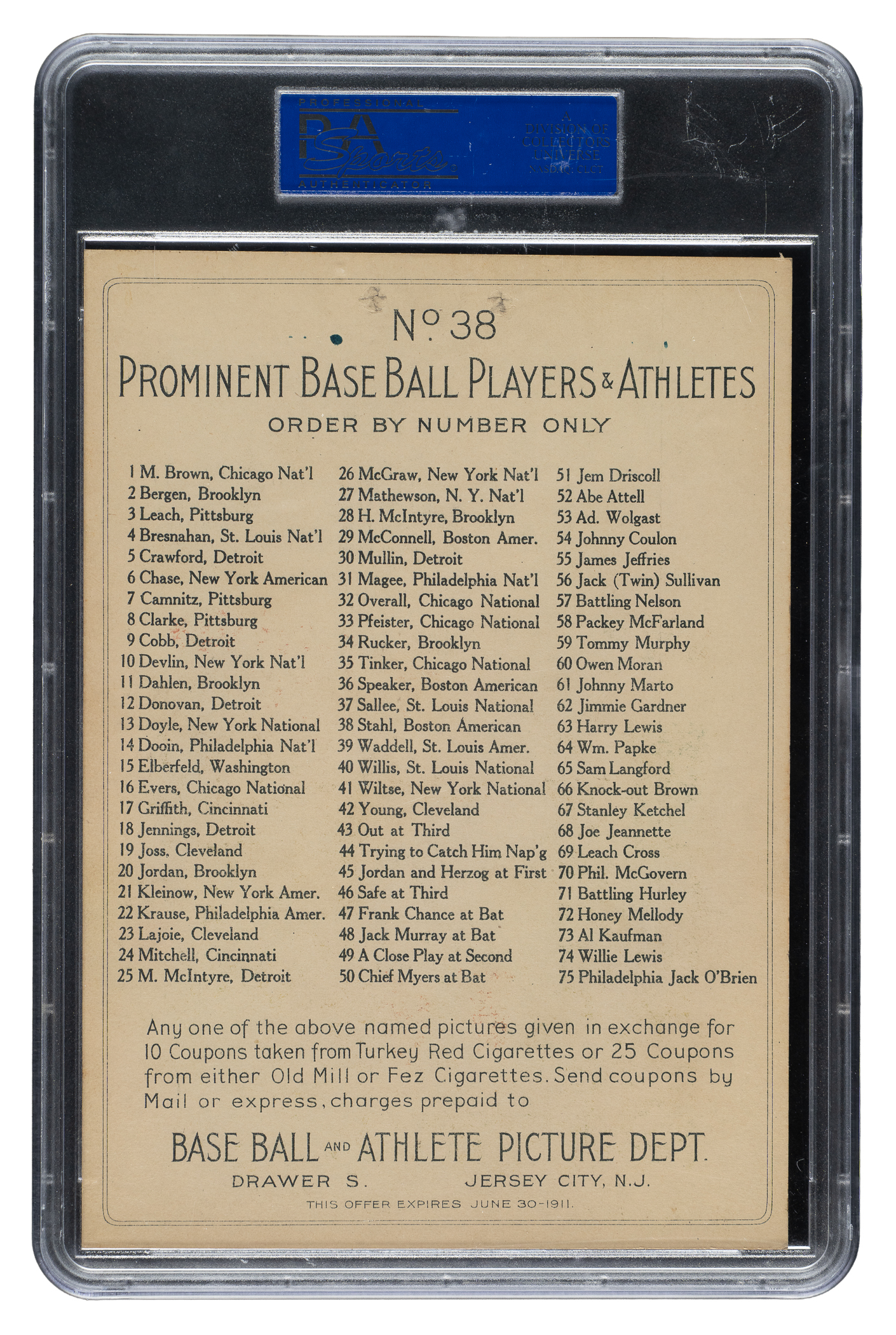 1911 T3 Turkey Red #87 Eddie Collins PSA Authentic - Advertising Back