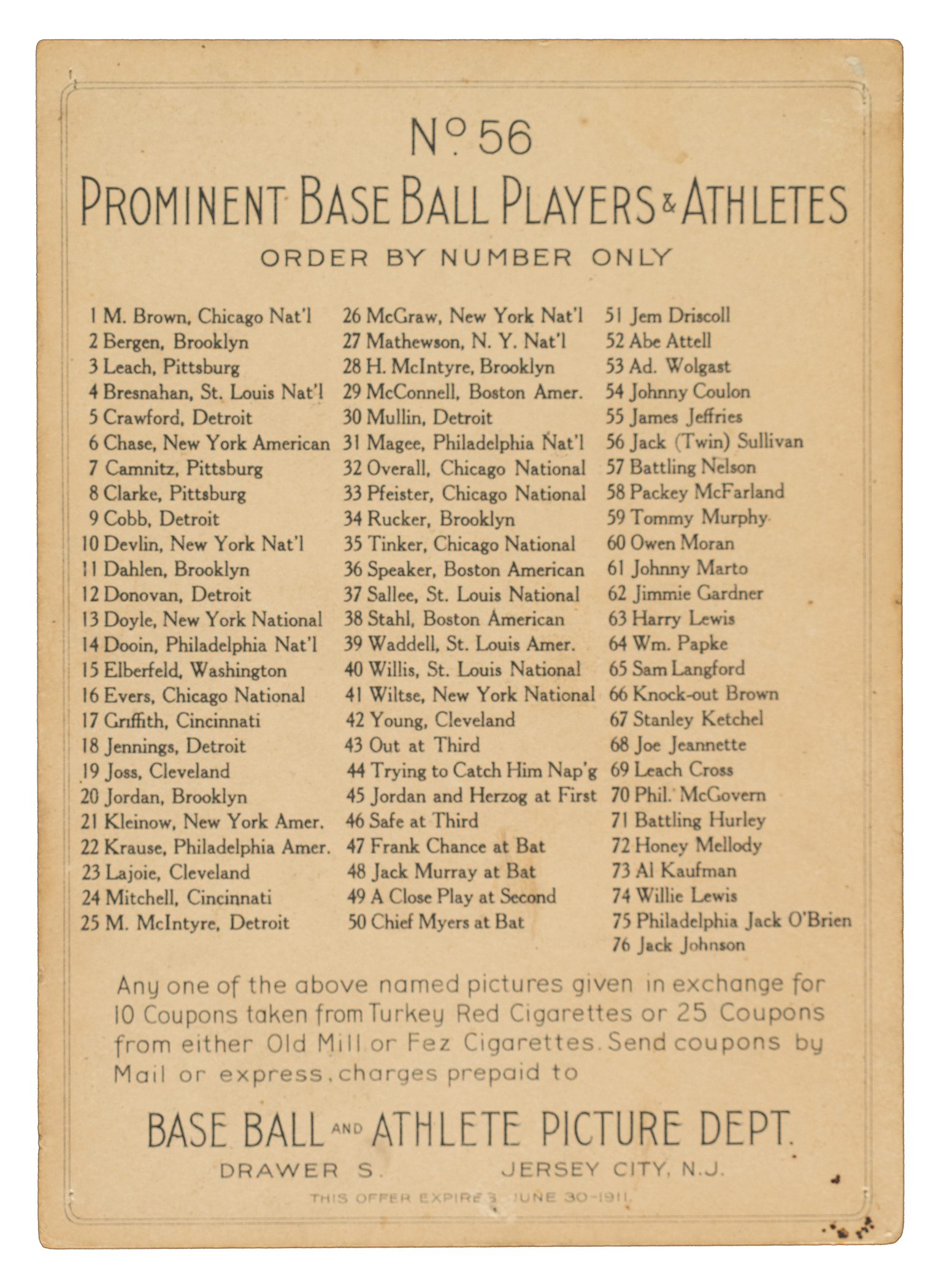 MP# 2485 Circa 1910 T218 Hassan "Champion Athletes and Prize Fighters" Jack Johnson Side View SGC VG/EX 4 Buy Now – $500