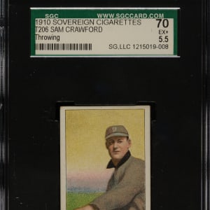 Graded EX+ 70 by SGC. Detroit Tigers Hall of Famer Sam Crawford. One of only three examples of this front/back combination graded at this level by SGC with just one higher.