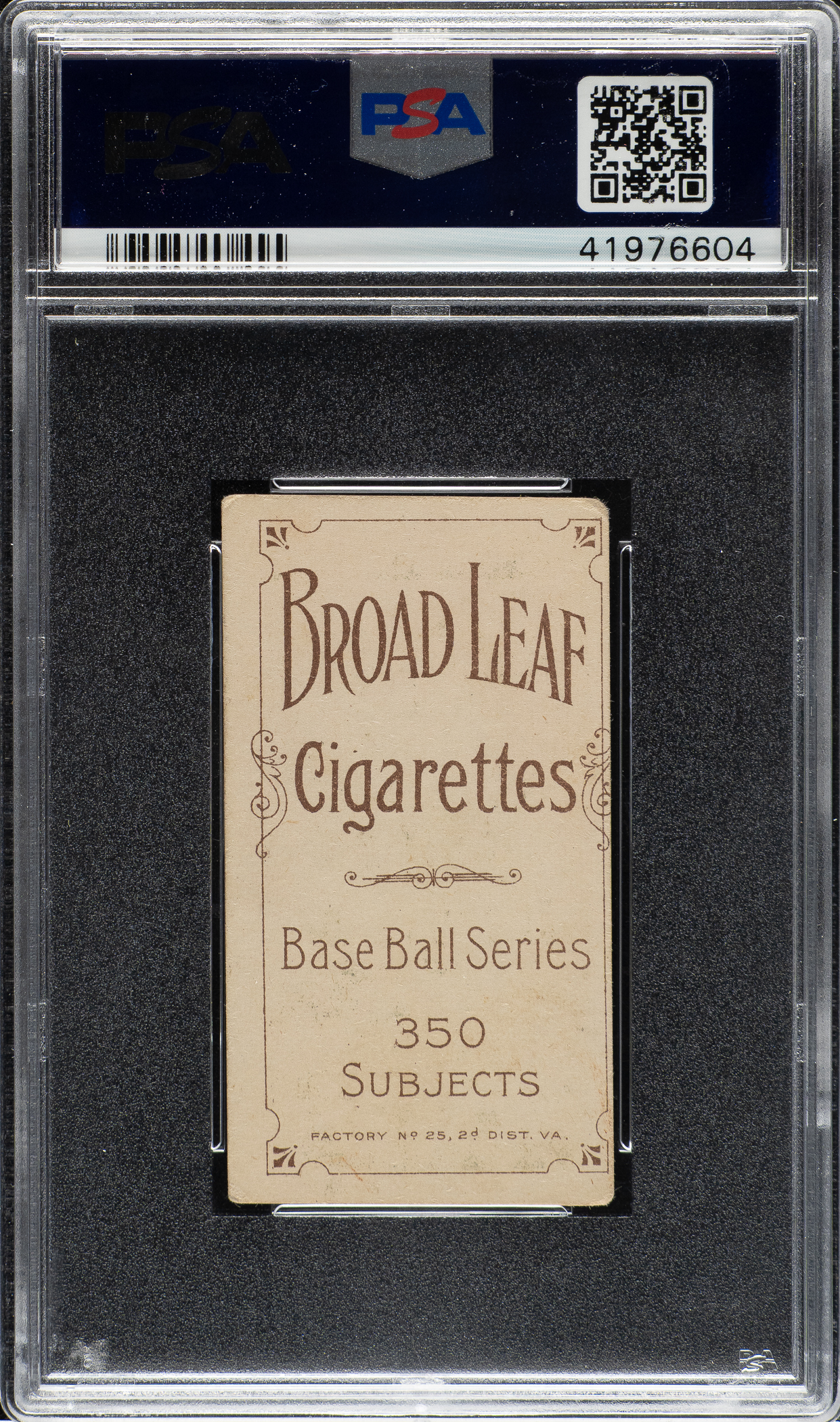 Graded VG 3 by PSA. This is the only example of this front/back combination graded at this level by PSA with none higher. Outstanding example of Bill Clancy (Buffalo Bisons) from the T206 White Border set with a desirable and rare Broad Leaf 350 advertising reverse. According to T206Resource.com, the Broad Leaf 350 series back ranks as the ninth scarcest on its list of 39 different T206 advertising backs. The offered card displays vibrant colors, outstanding registration, excellent centering, and honest corner wear. The important advertising reverse is boldly printed and clean. This is a superb example featuring a rare Broad Leaf 350 back and one that would be a highlight in any rare-back collection.