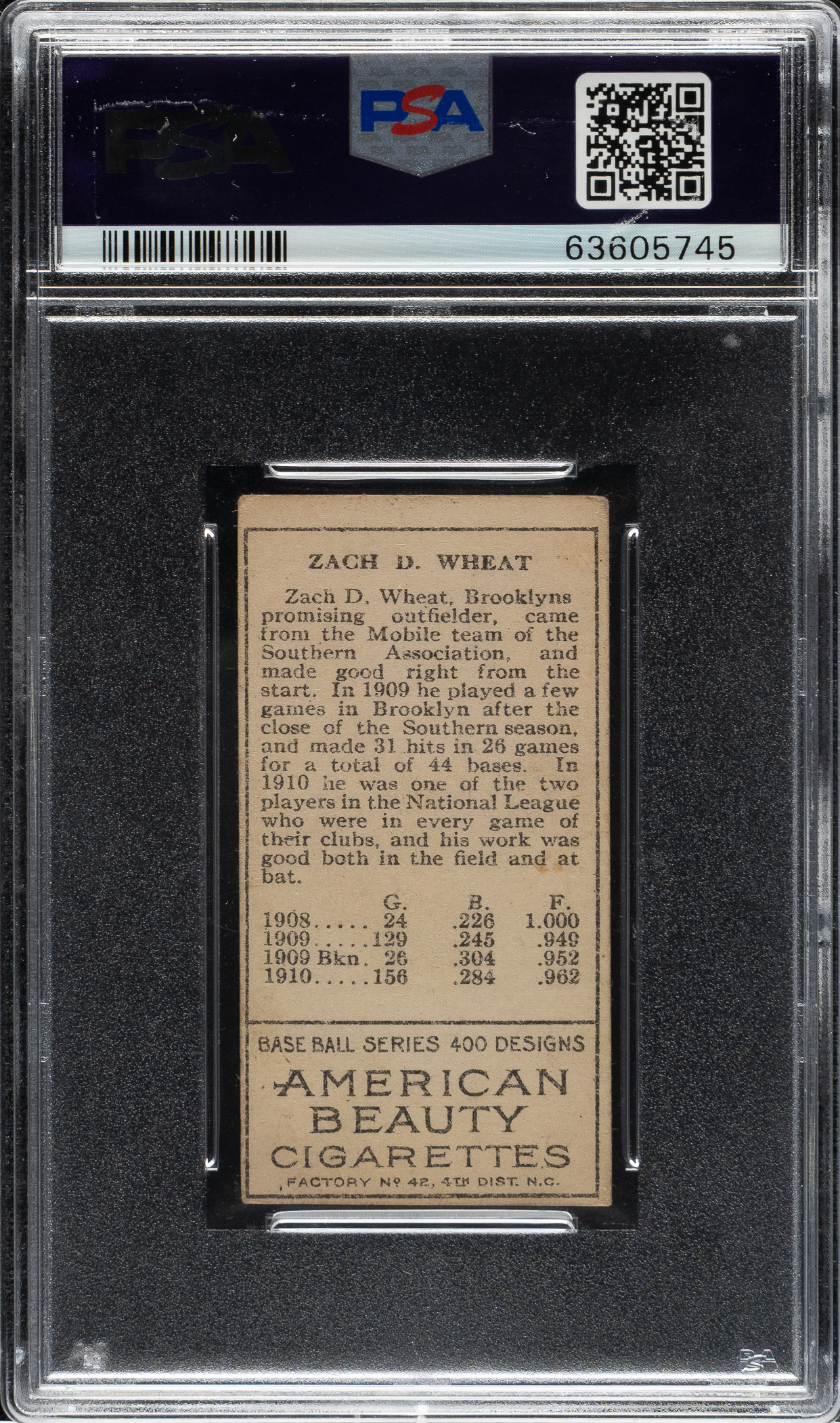 Graded VG 3 by PSA. Brooklyn Superbas Hall of Famer Zack Wheat.