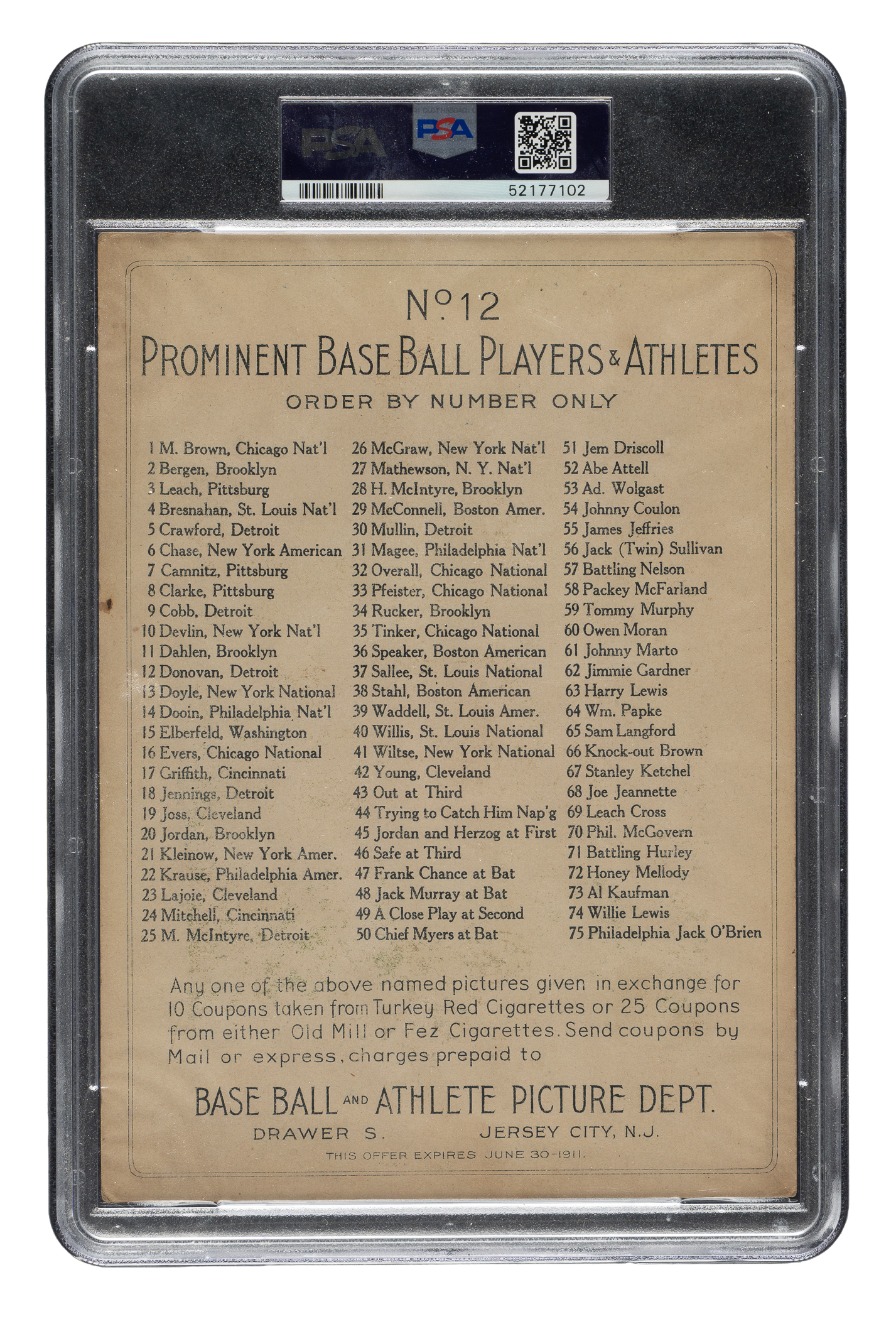 1911 T3 Turkey Red #87 Eddie Collins PSA Authentic - Advertising Back