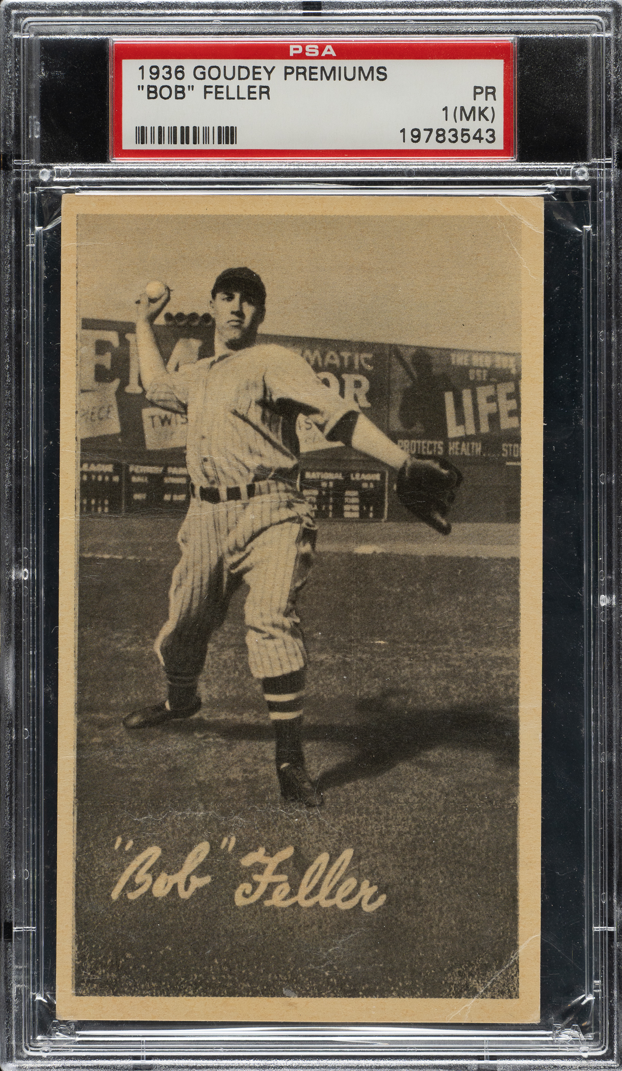 Graded POOR 1 (MK) by PSA. Cleveland Indians Hall of Famer Bob Feller.