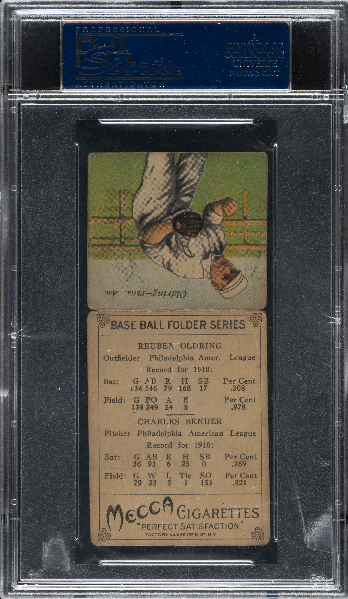 Lot # 1202: 1911 T201 Mecca Double Folders Chief Bender/Oldring PSA GOOD+ 2.5