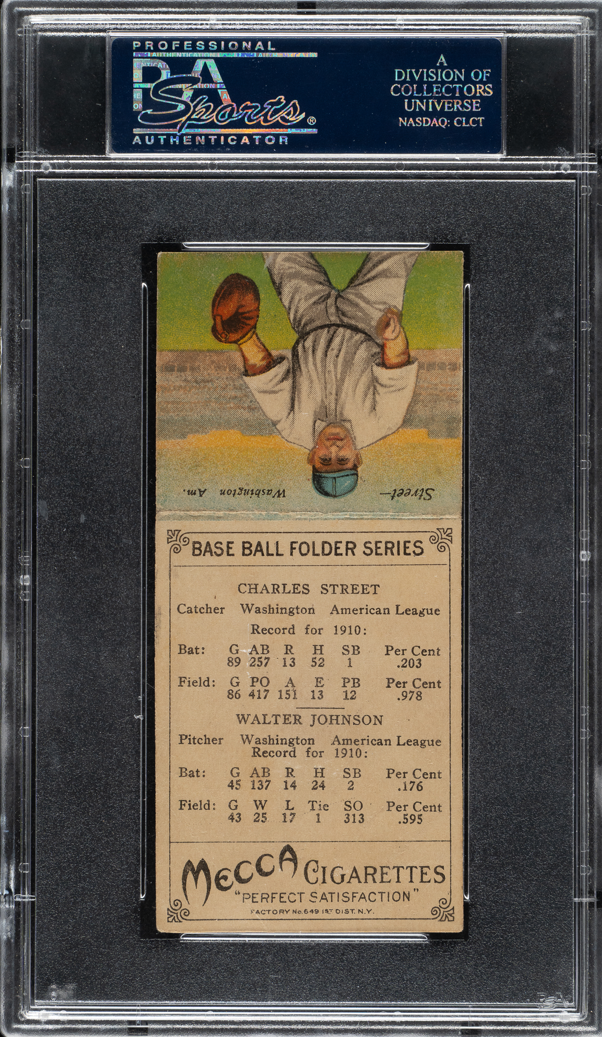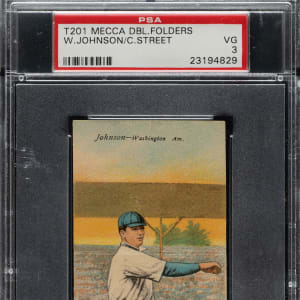 Lot # 1199: 1911 T201 Mecca Double Folder Walter Johnson/Charles Street PSA VG 3