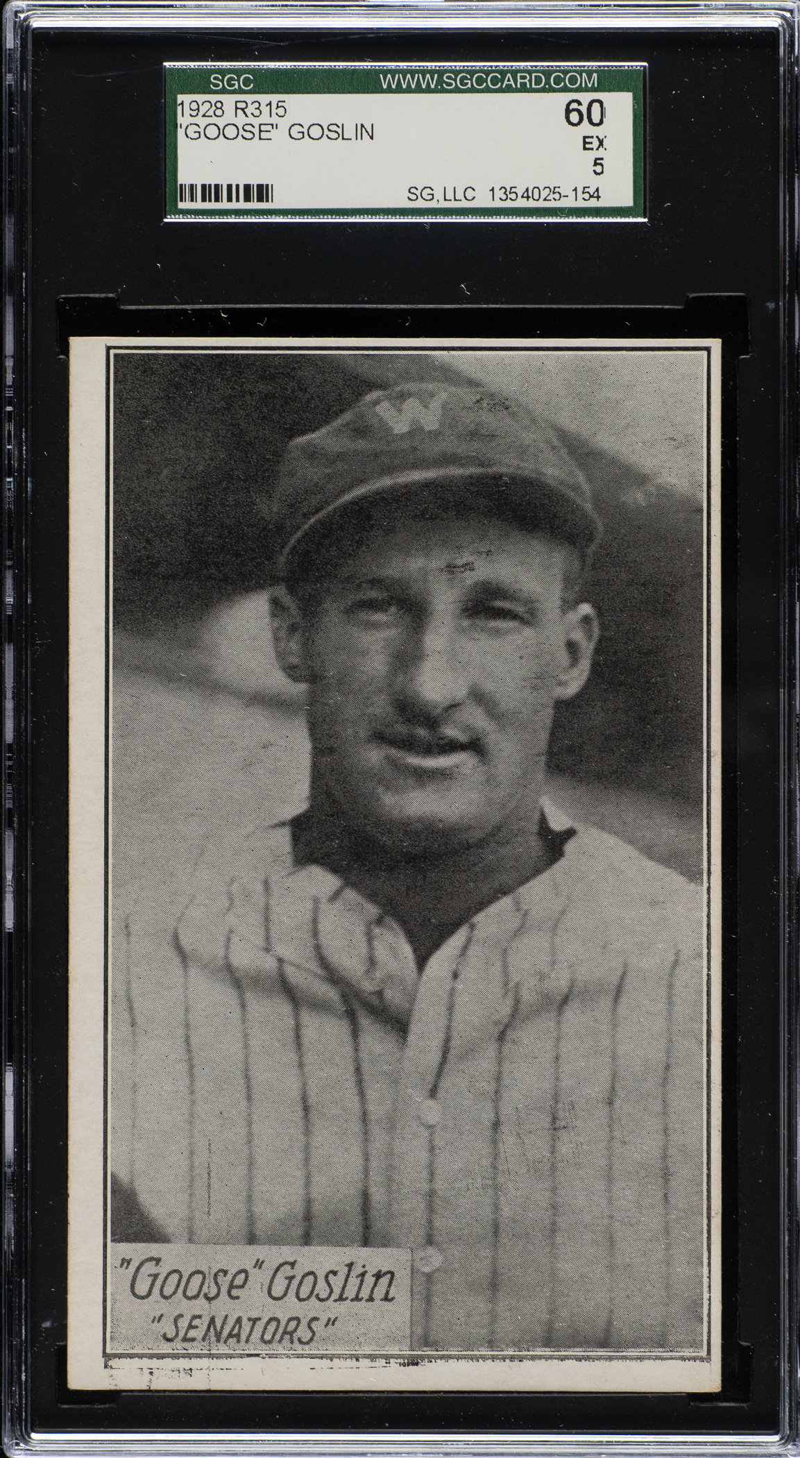 Graded EX 60 by SGC. Washington Senators Hall of Famer Goose Goslin.
