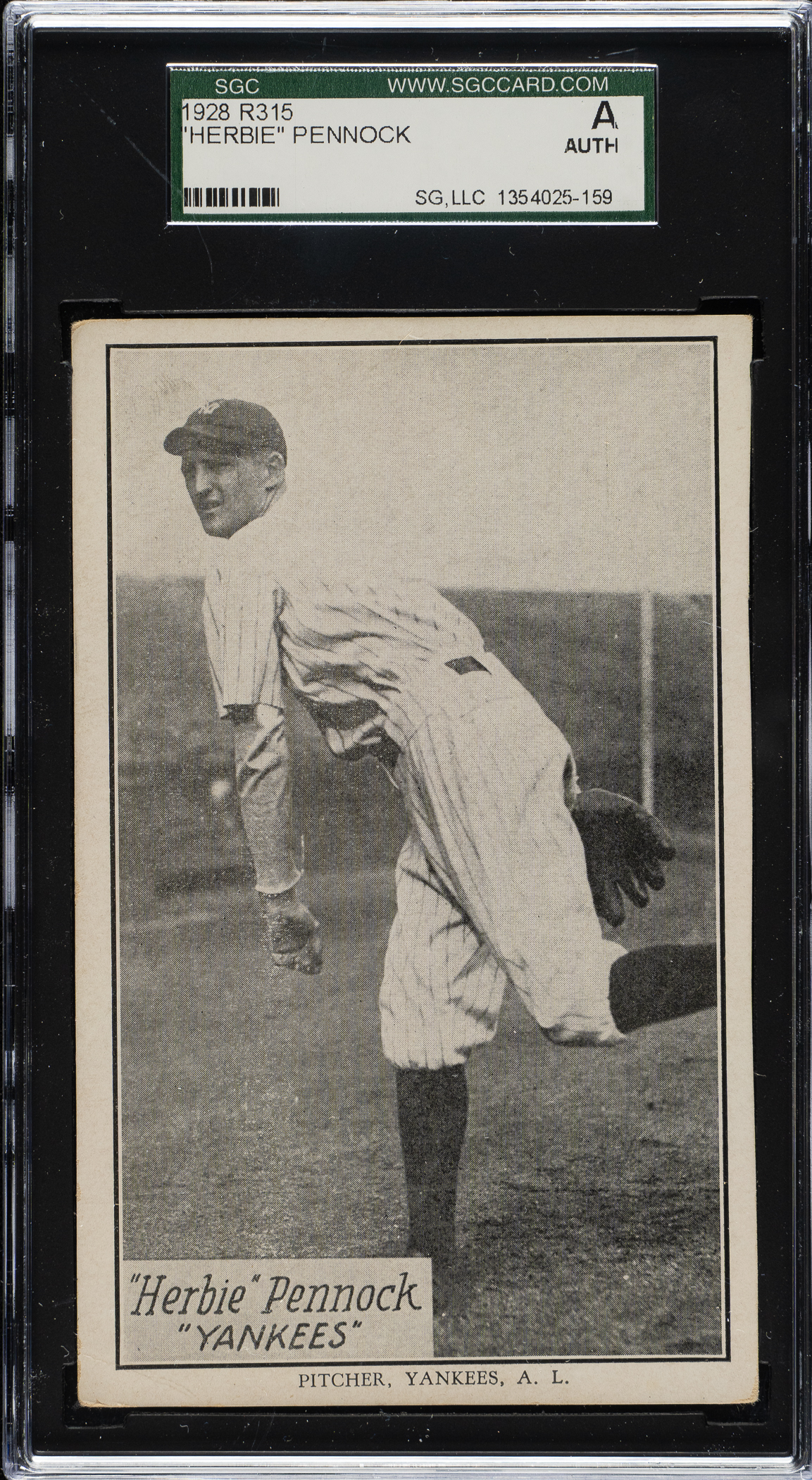 Lot # 1362: 1929 R315 "Portraits and Action" Herb Pennock SGC Authentic