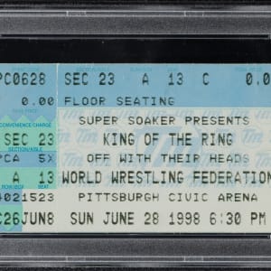 Graded VG-EX 4 (MK). Ticket stub (3-3/8 x 2 inches) issued for the WWF King of the Ring clash between Undertaker and Mankind on June 28, 1998, at Pittsburgh Civic Arena. The fight, which took place inside "Hell in a Cell," was won by the Undertaker and is today widely regarded as one of the great wrestling matches in history.