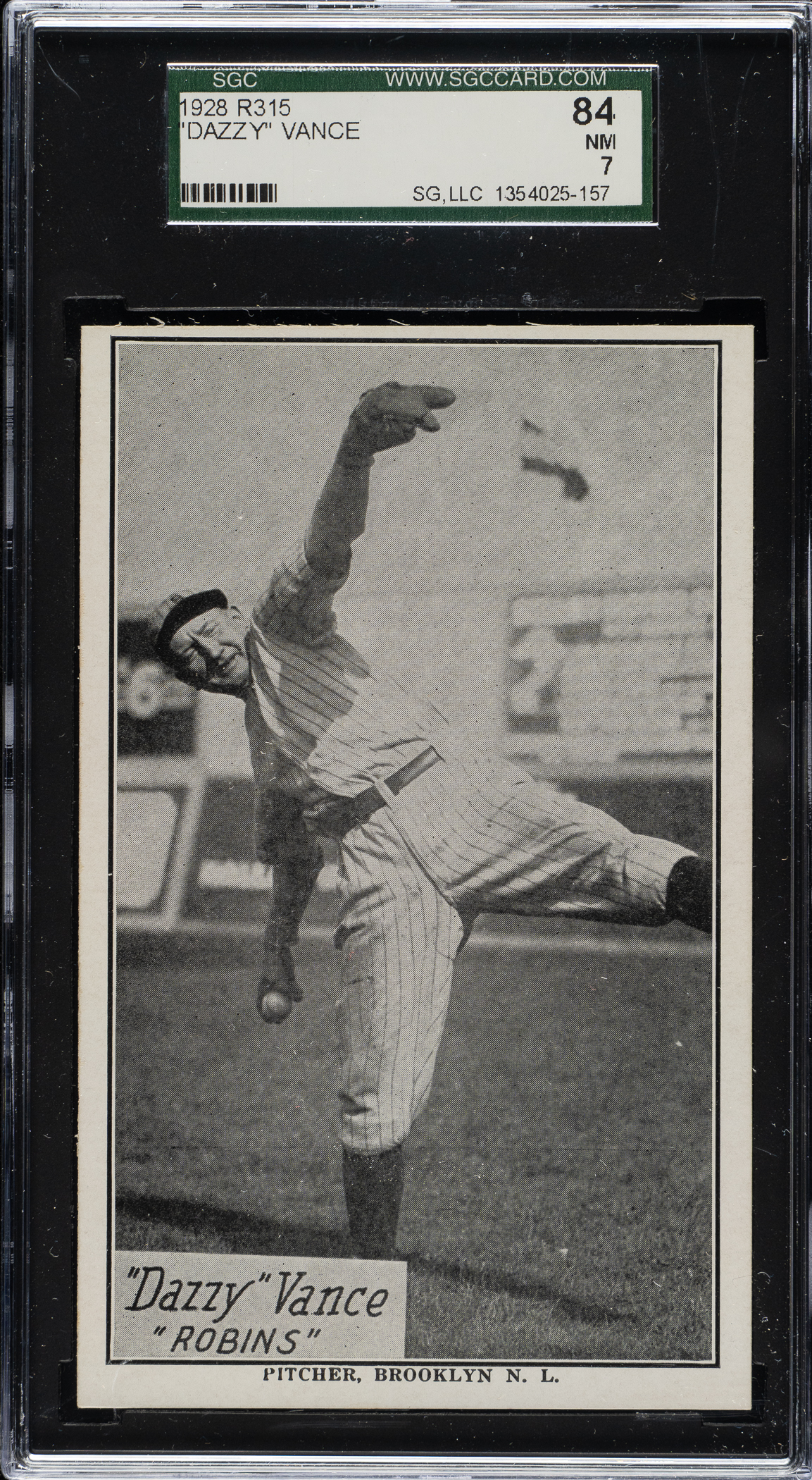 Graded NM 84 by SGC. Brooklyn Robins Hall of Famer Dazzy Vance.