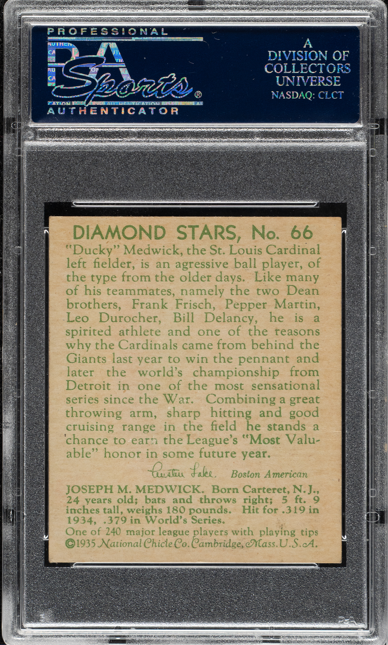 Lot # 1586: 1934-1936 R327 Diamond Stars #66 Ducky Medwick PSA VG-EX 4
