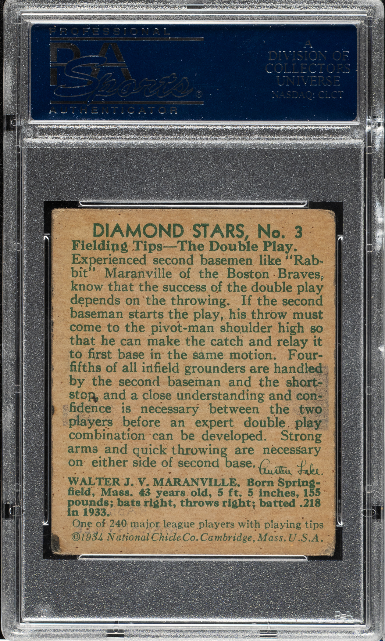 Lot # 1554: 1934-1936 R327 Diamond Stars #3 Rabbit Maranville (1934 Green Back) PSA GOOD 2