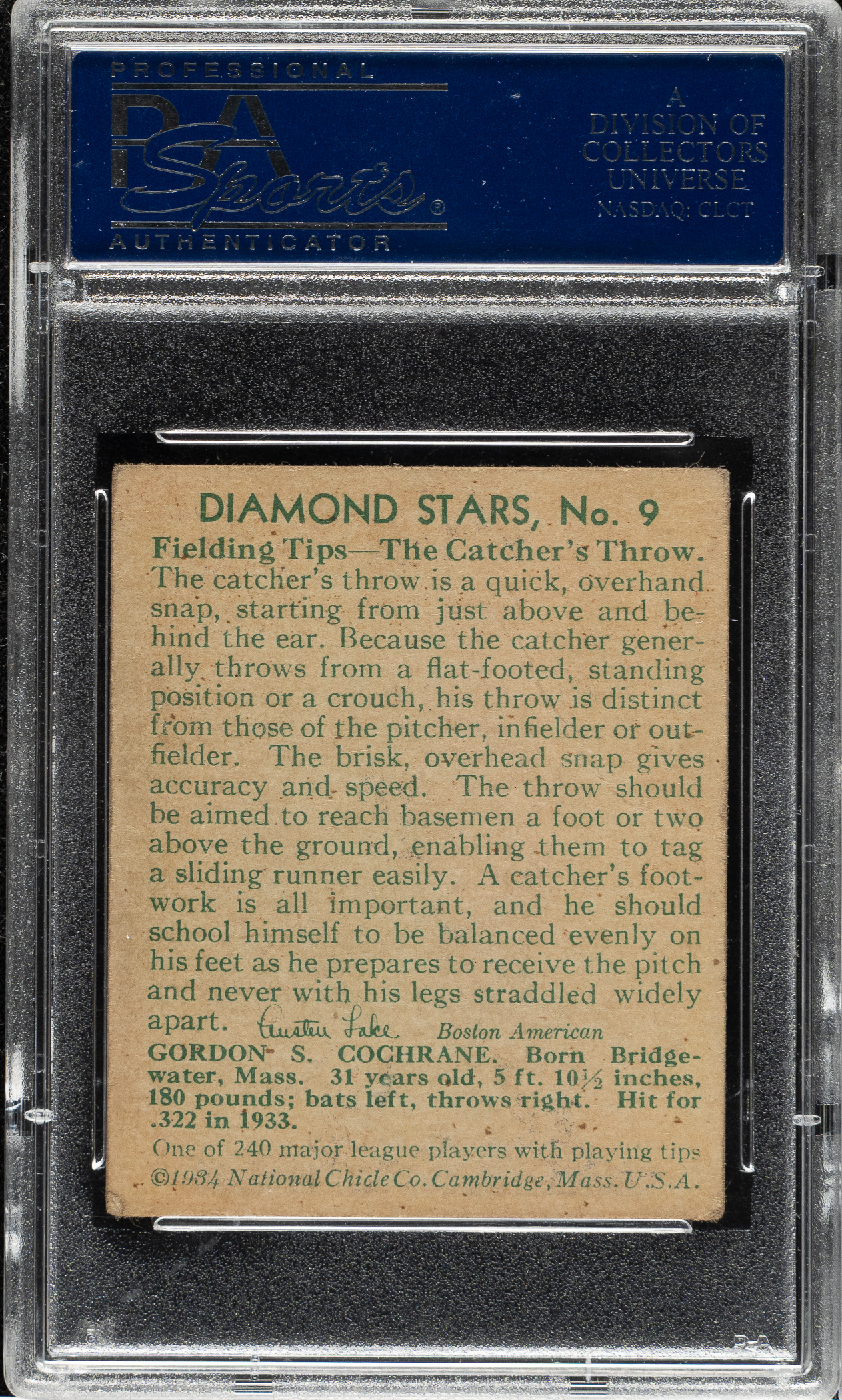 Lot # 1596: 1934-1936 R327 Diamond Stars #9 Mickey Cochrane (1934 Green Back) PSA GOOD+ 2.5