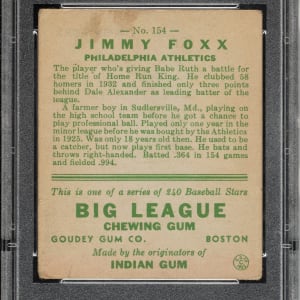 Lot # 1455: 1933 R319 Goudey #154 Jimmy Foxx PSA VG 3