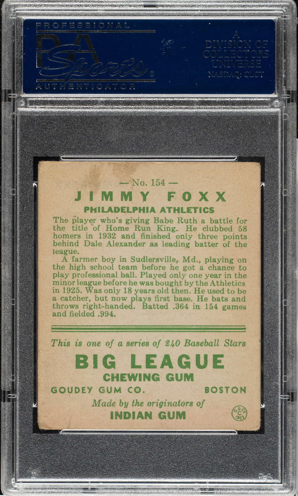 Graded VG 3 by PSA. Philadelphia Athletics Hall of Famer Jimmie Foxx.