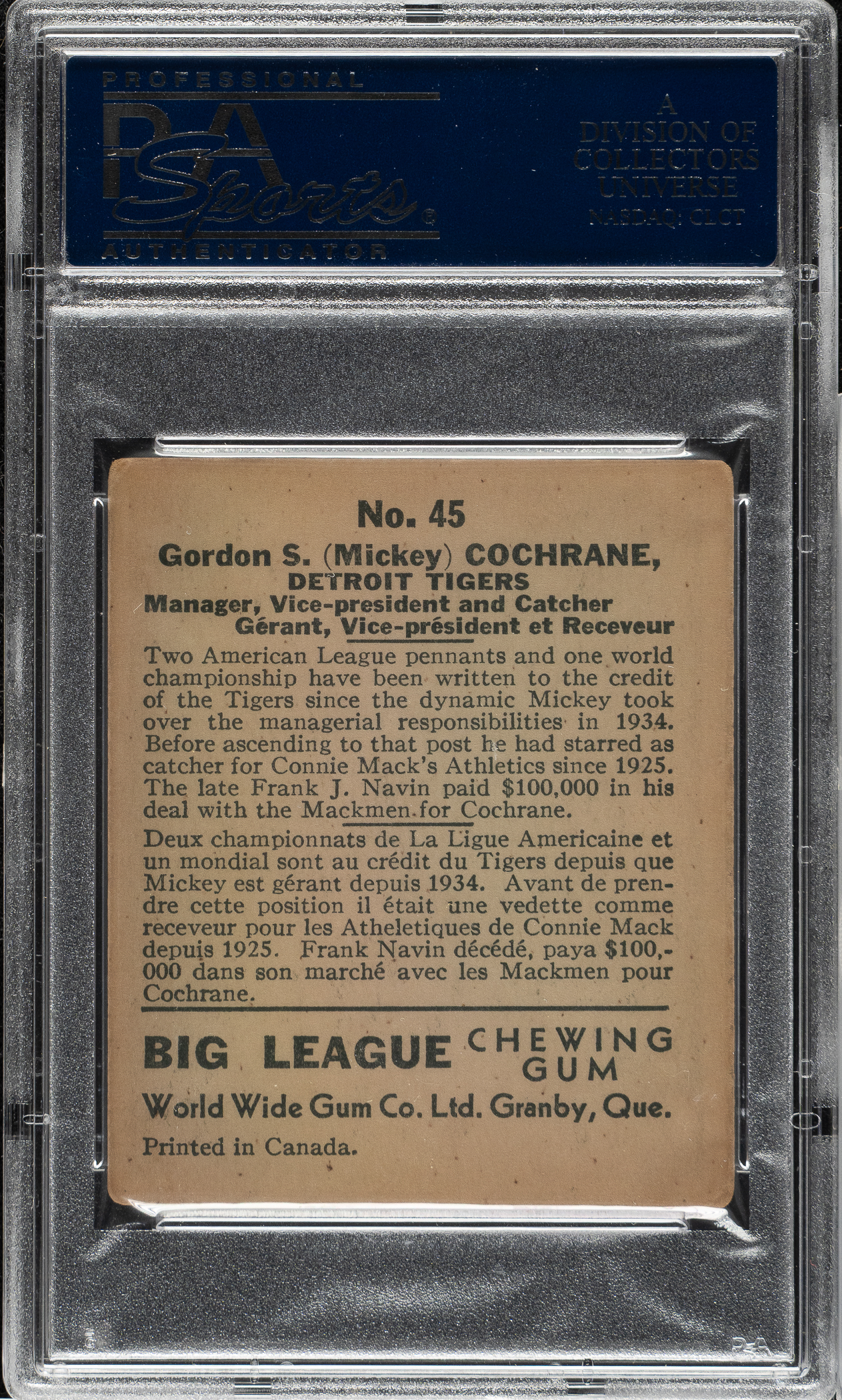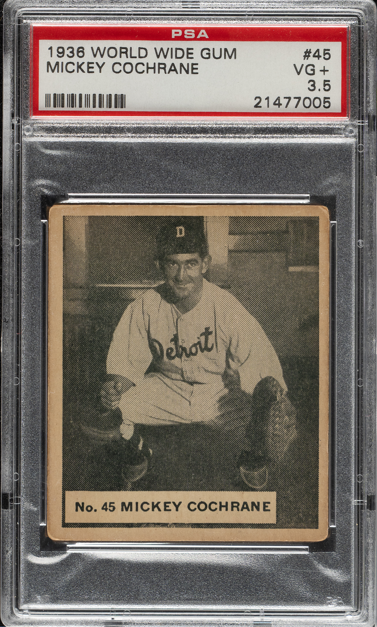 Graded VG+ 3.5 by PSA. Detroit Tigers Hall of Famer Mickey Cochrane.