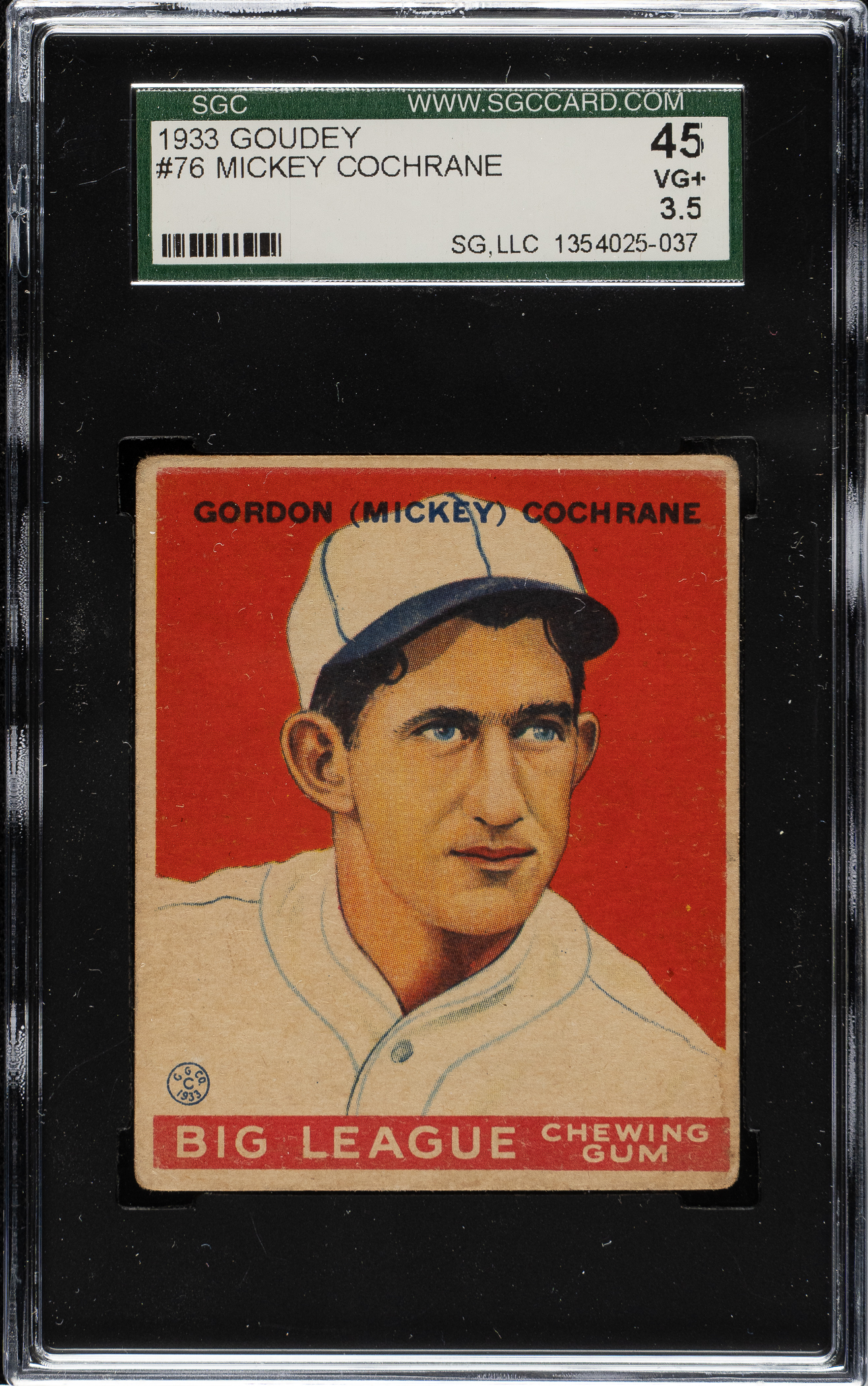 Lot # 1485: 1933 R319 Goudey #76 Mickey Cochrane SGC VG+ 45