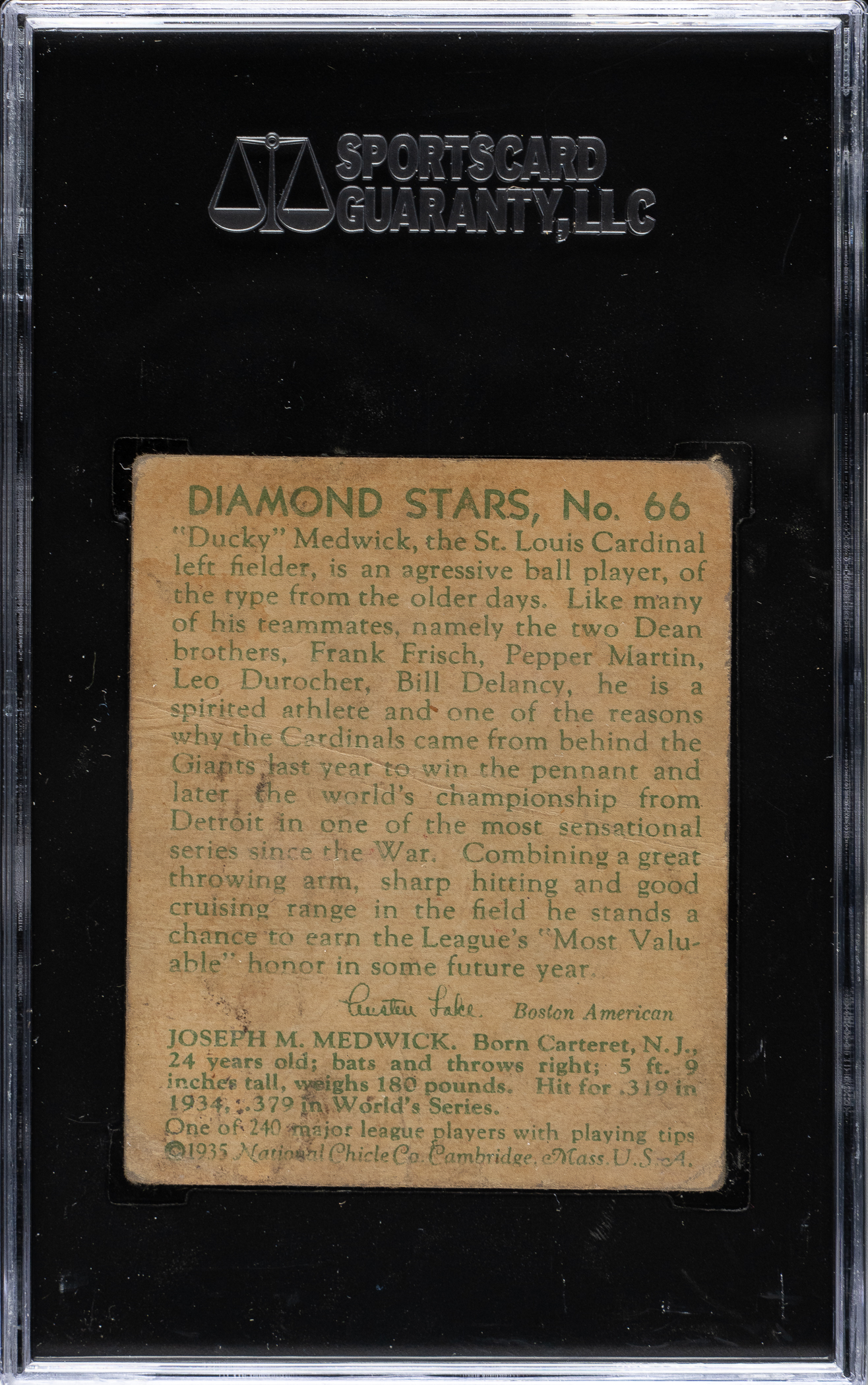 Lot 1564 1934-1936 R327 Diamond Stars #36 Ernie Lombardi - "Earnie" Error Card (1935 Green Back) SGC FAIR 20