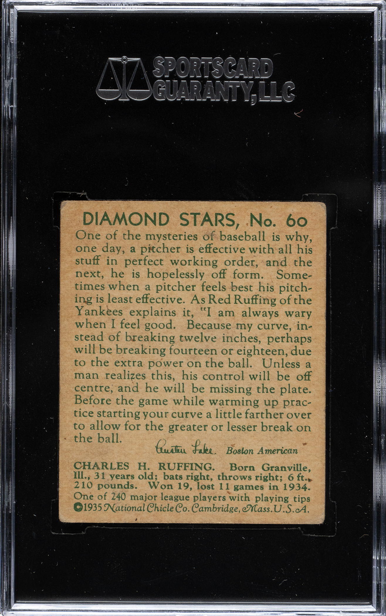 Lot # 1583: 1934-1936 R327 Diamond Stars #60 Red Ruffing SGC VG 40